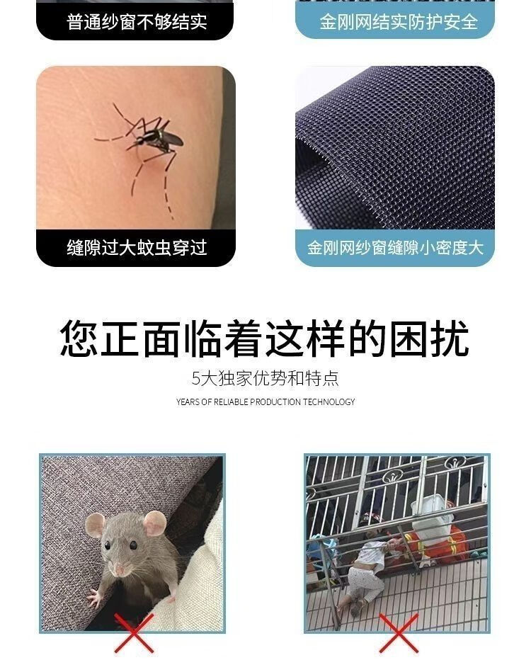 Chaosihui 1-2 meters thick King Kong mesh window screen invisible anti-theft window screen anti-mosquito, insect-proof, cat-proof and rat-proof home self-installation black - 1.2 thick/encrypted mesh/extra hard anti-drop 60 cm wide * 150 cm long upgraded and hardened