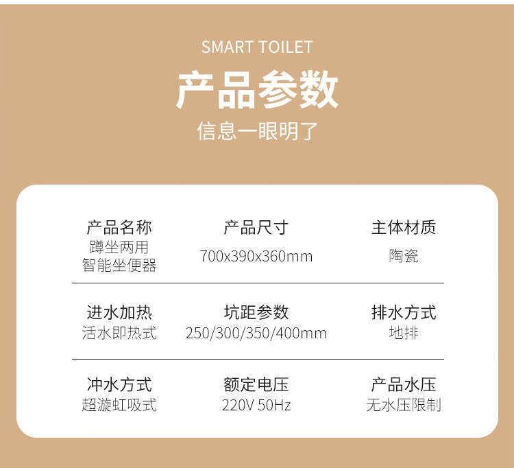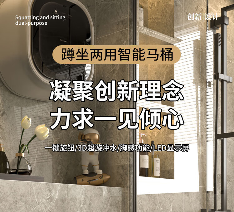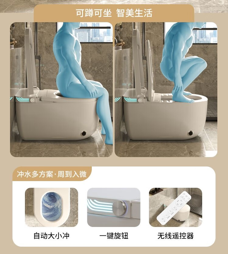 Jimutao's new squatting dual-purpose smart toilet all-in-one squatting and sitting dual-purpose toilet bubble shield seat heated squatting dual-purpose (standard + bubble shield) 400 pit distance