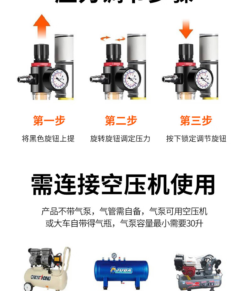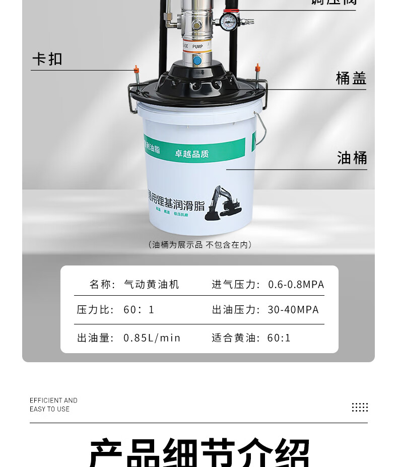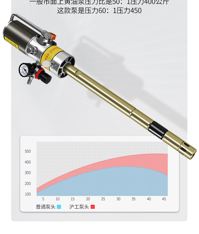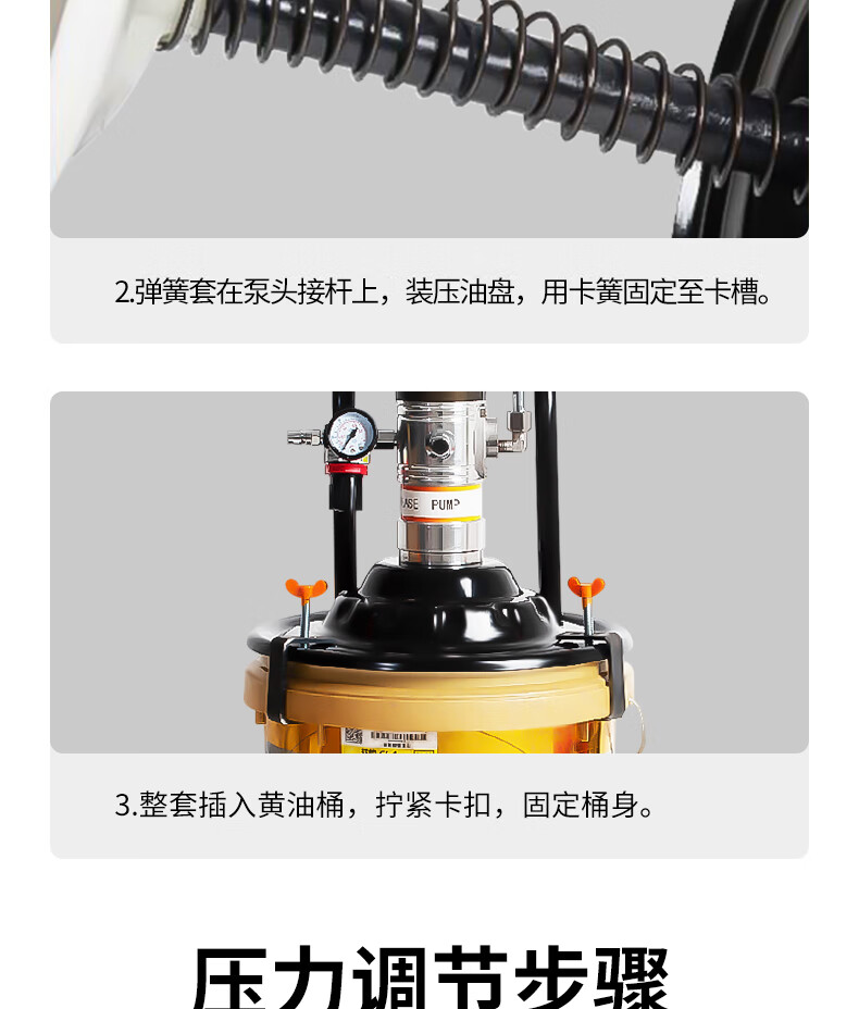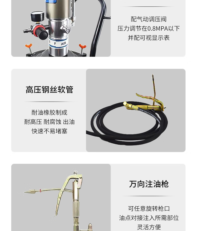 Hugong Butter Pneumatic High-Pressure Oil Injector Small Butter Pump Fully Automatic Butter Artifact Pneumatic Grease Gun Gas Finely equipped pneumatic barrel-type 4-meter high-pressure pipe + oil and water