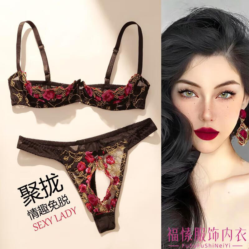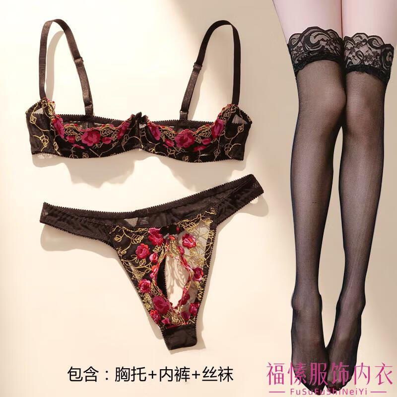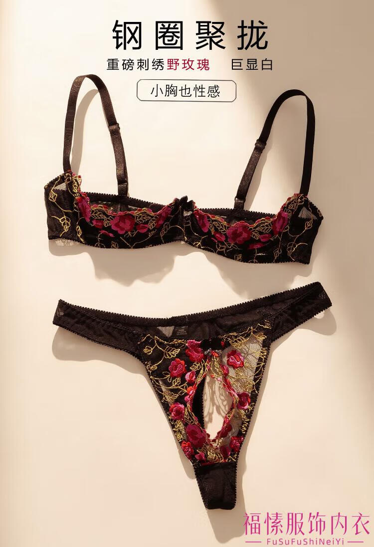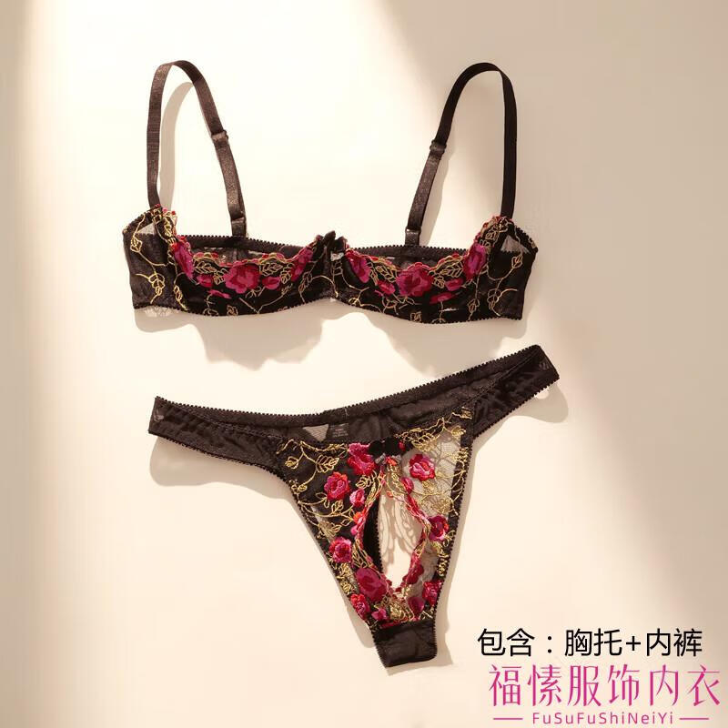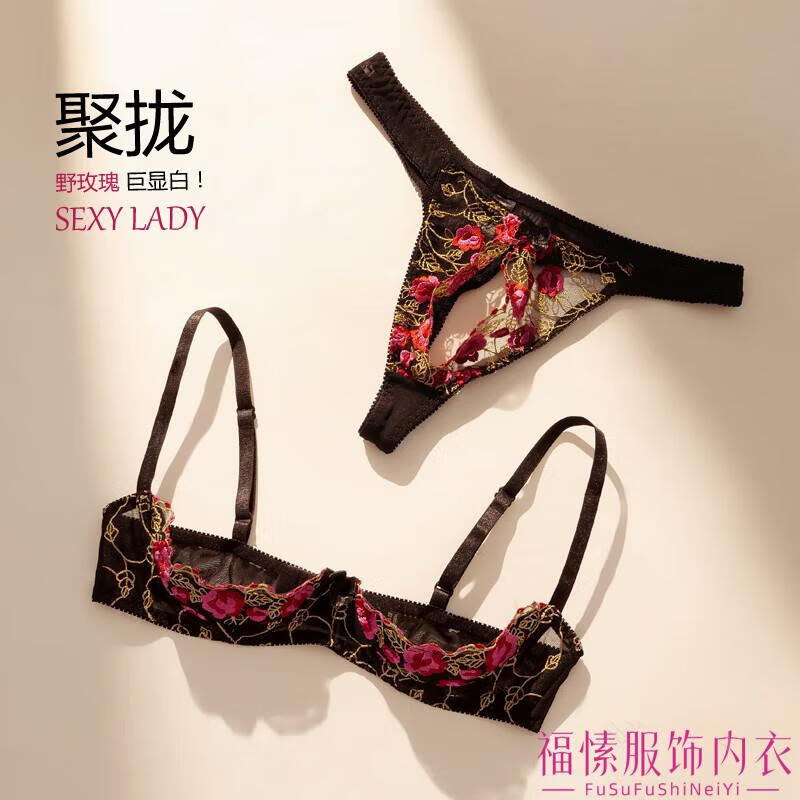 Min Ting Sexy Beauty Sex Underwear Luxurious Sexy Half Cup Underwear French Romantic Hollow Open Emotional Gathering Underwire Thorn Rose Bra Set One Size L 110-130Jin Jin is equal to 0.5 kg