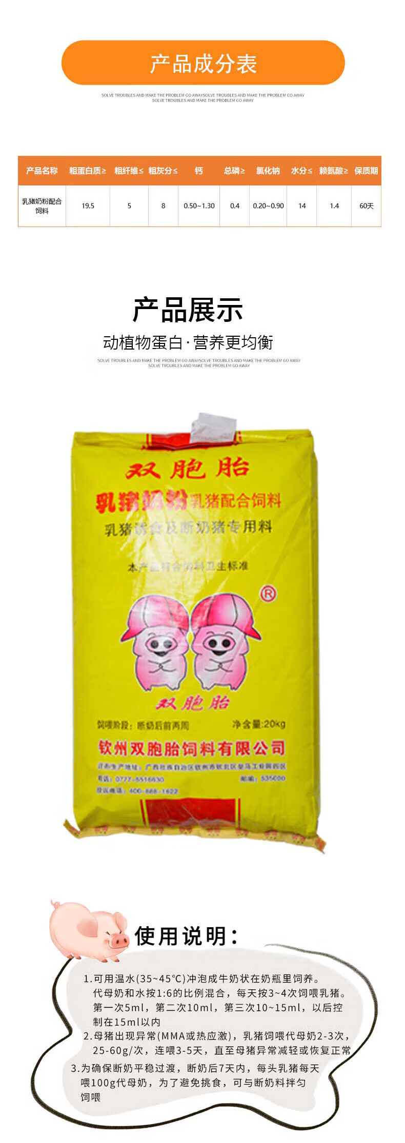 OIMG twin feed veterinary pig food feeding dairy cows, sheep and horses farm creep highly concentrated nutritional milk powder pet fattening 80Jin Jin is equal to 0.5kg loaded creep material 851