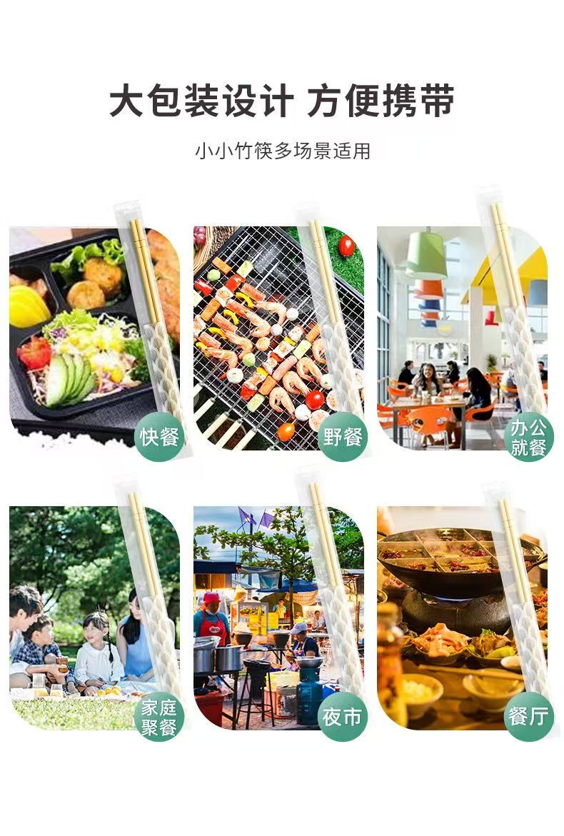 High-end disposable chopsticks for restaurants, cheap bamboo chopsticks, convenient chopsticks for fast food takeout, individually packaged small round chopsticks, 50 pairs, 5.0*19.5cm