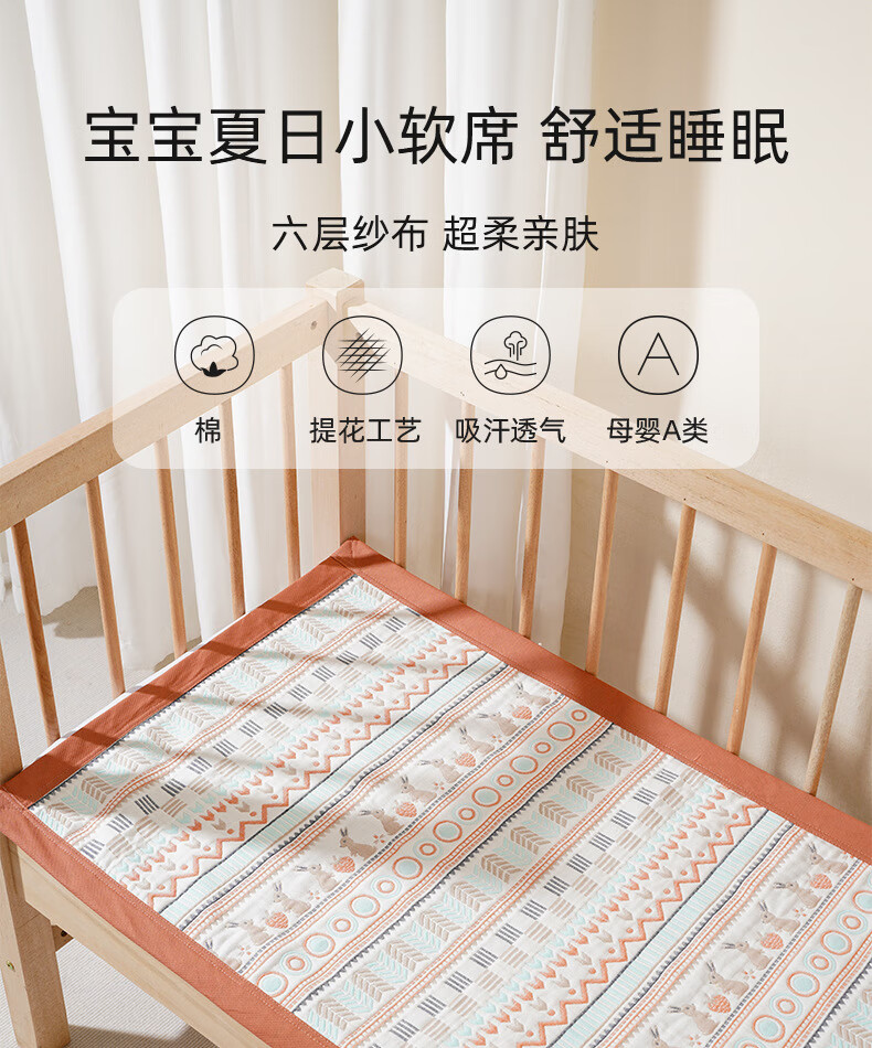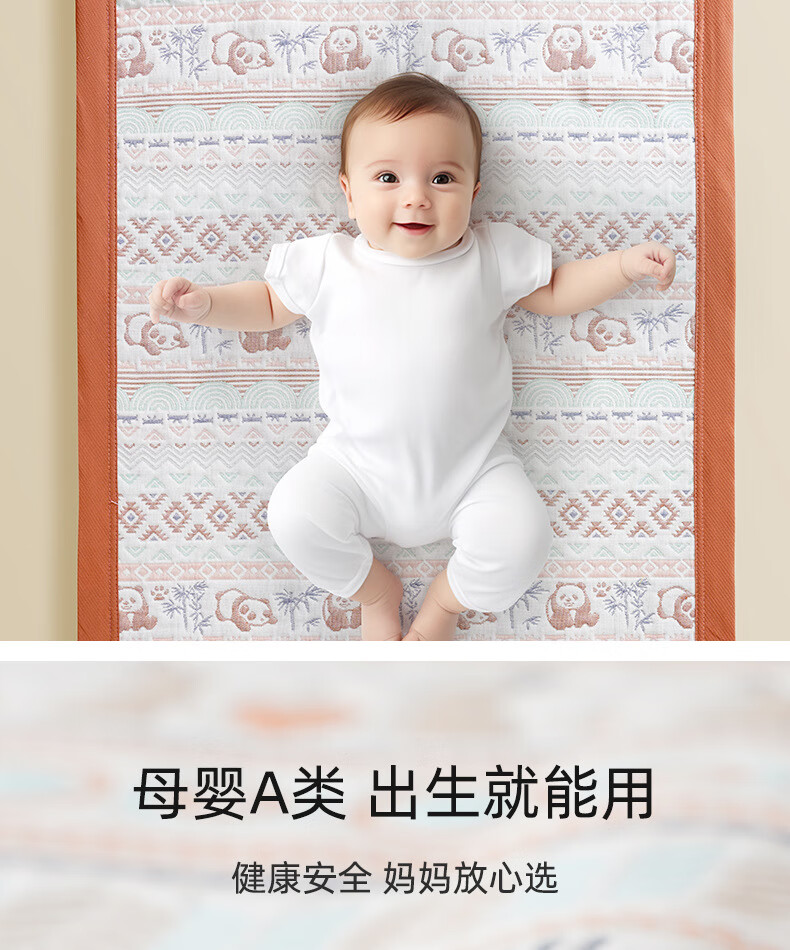 Green Valley baby mat pure cotton gauze sheet baby soft mat summer sweat-absorbent and breathable kindergarten baby cotton mat Big Nut (cotton gauze soft mat) 60*100cm
