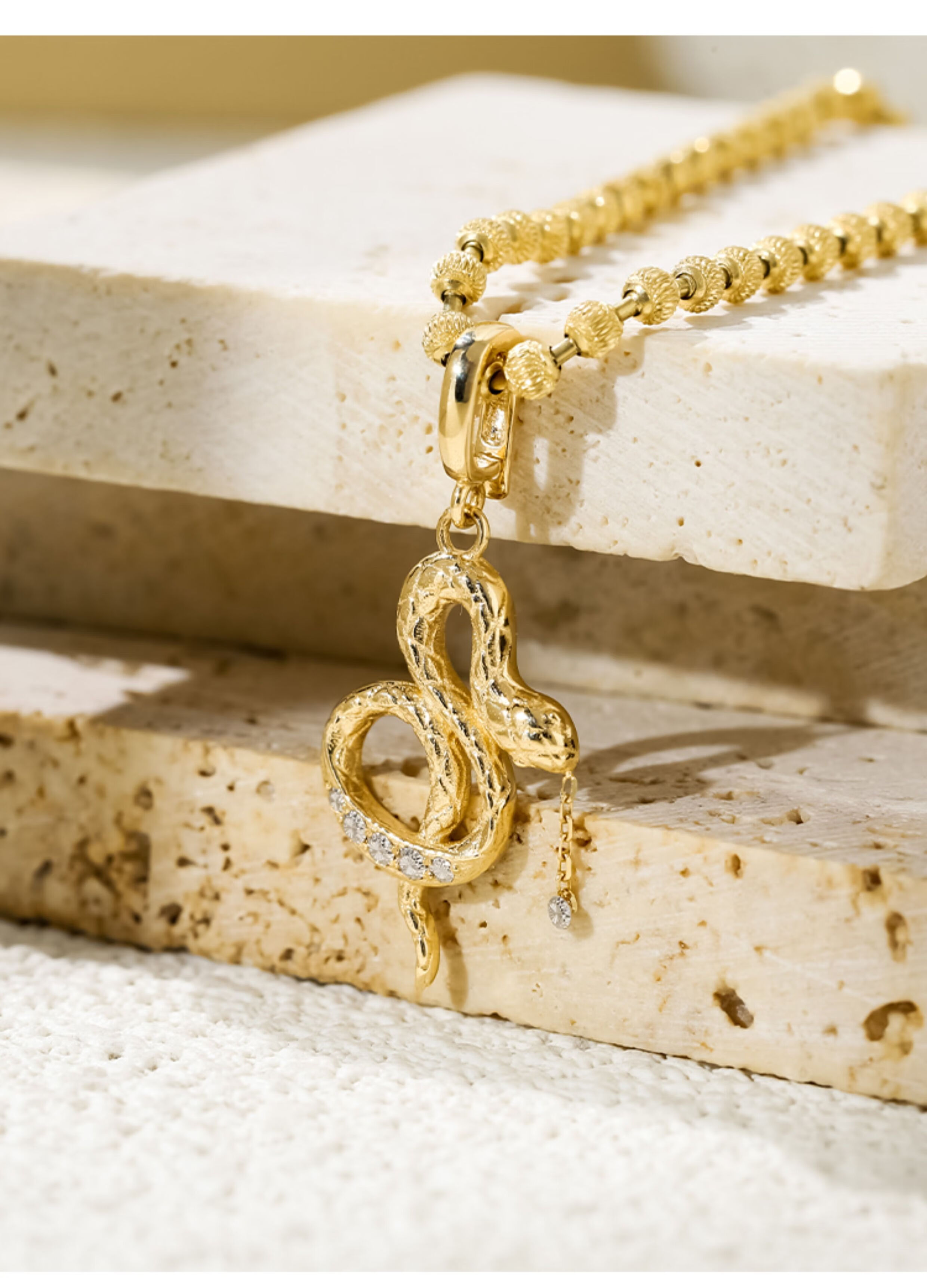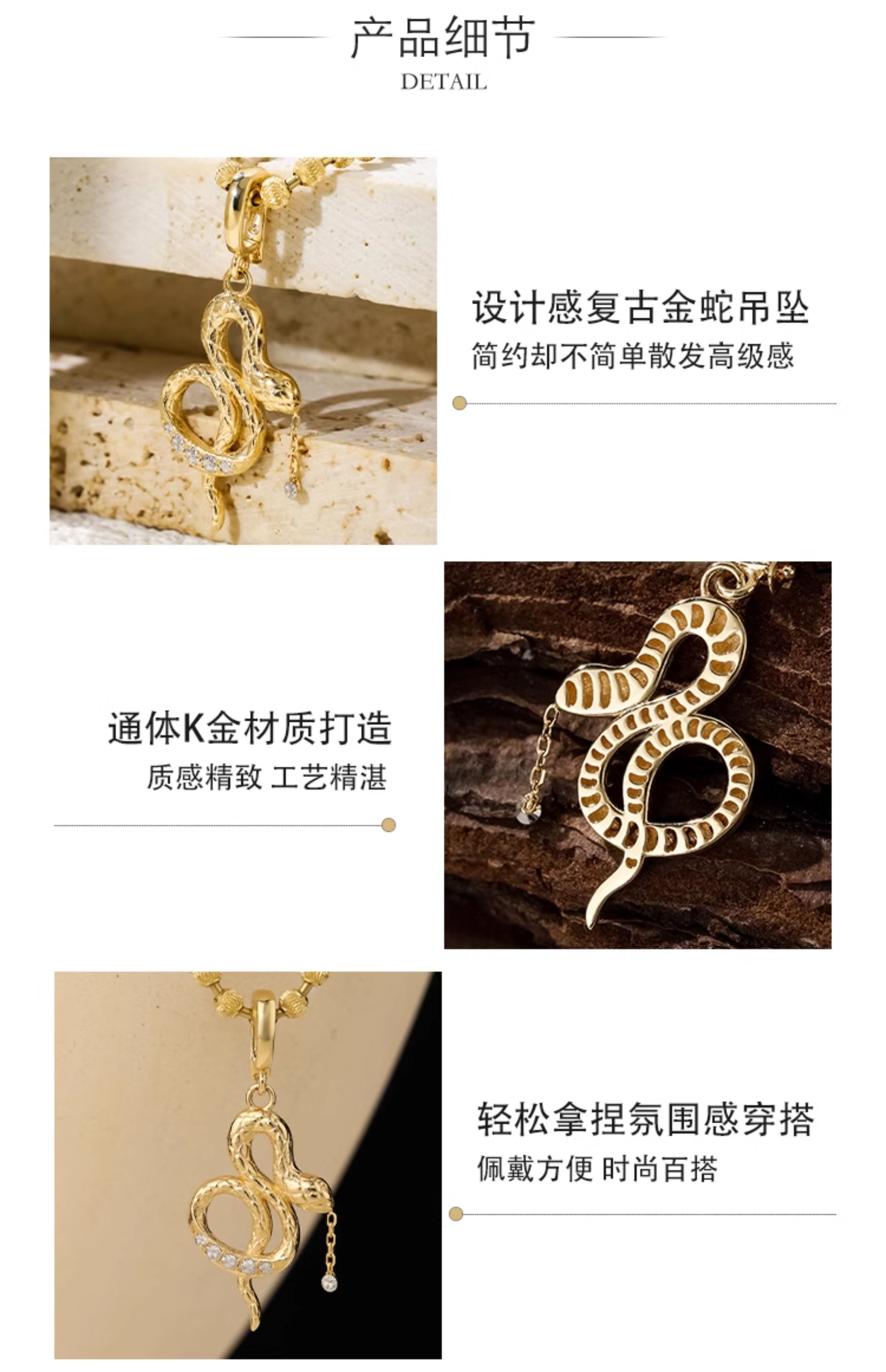 Chihuan 18K gold diamond tassel carved gold snake pendant sweet cool niche sexy necklace pendant quiet luxury design light gold customized