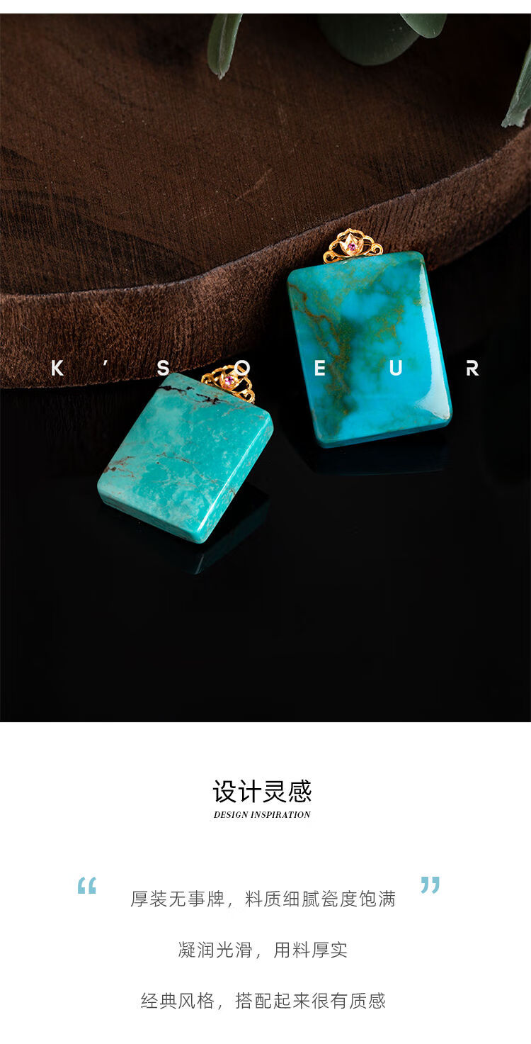 Chihuan 18K Gold Turquoise Pendant with Certificate Gift Box Diversity Gift for Girlfriend on Valentine's Day 18K Gold Turquoise Pendant