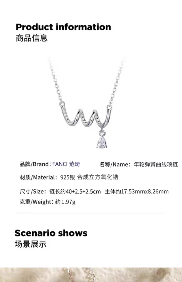 Fanc 925 Silver Necklace Feminine Simple Design Curve Pendant Clavicle Chain Summer Necklace