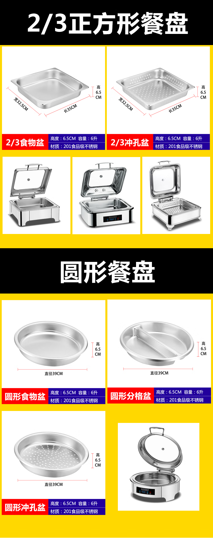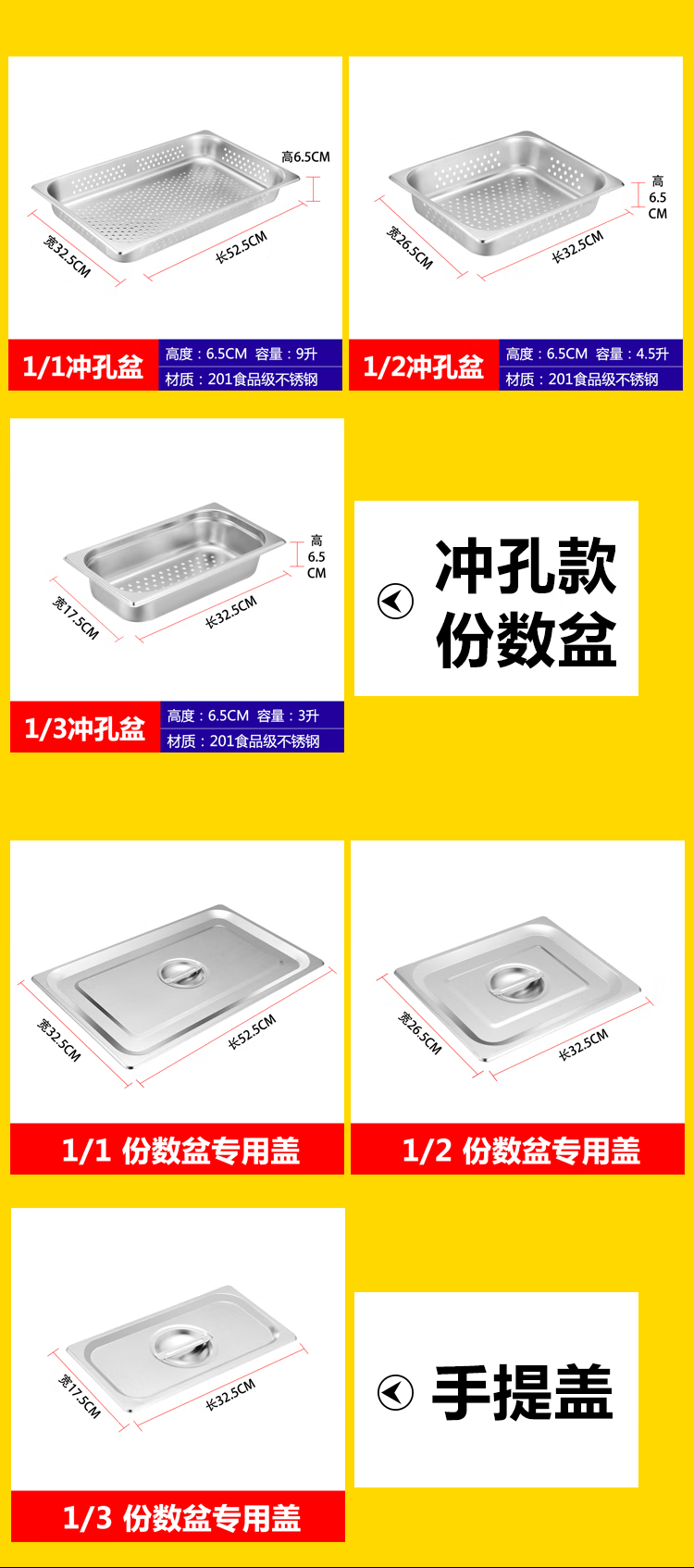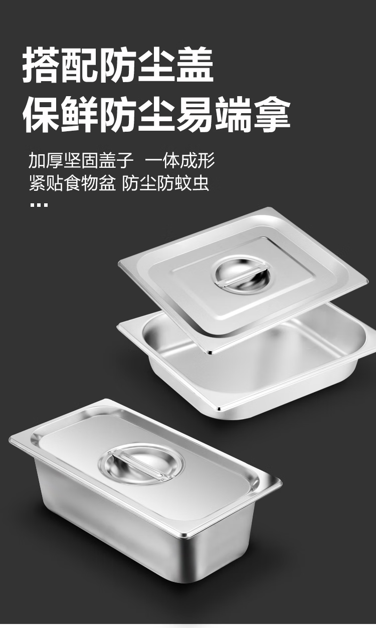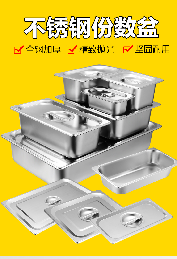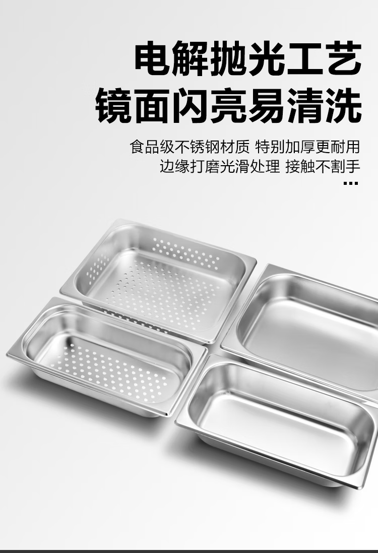 Stainless steel serving basin buffet stove plate Buffy stove inner pot buffet basin with lid 304 square food plate 1/2 stainless steel punched 6.5CM