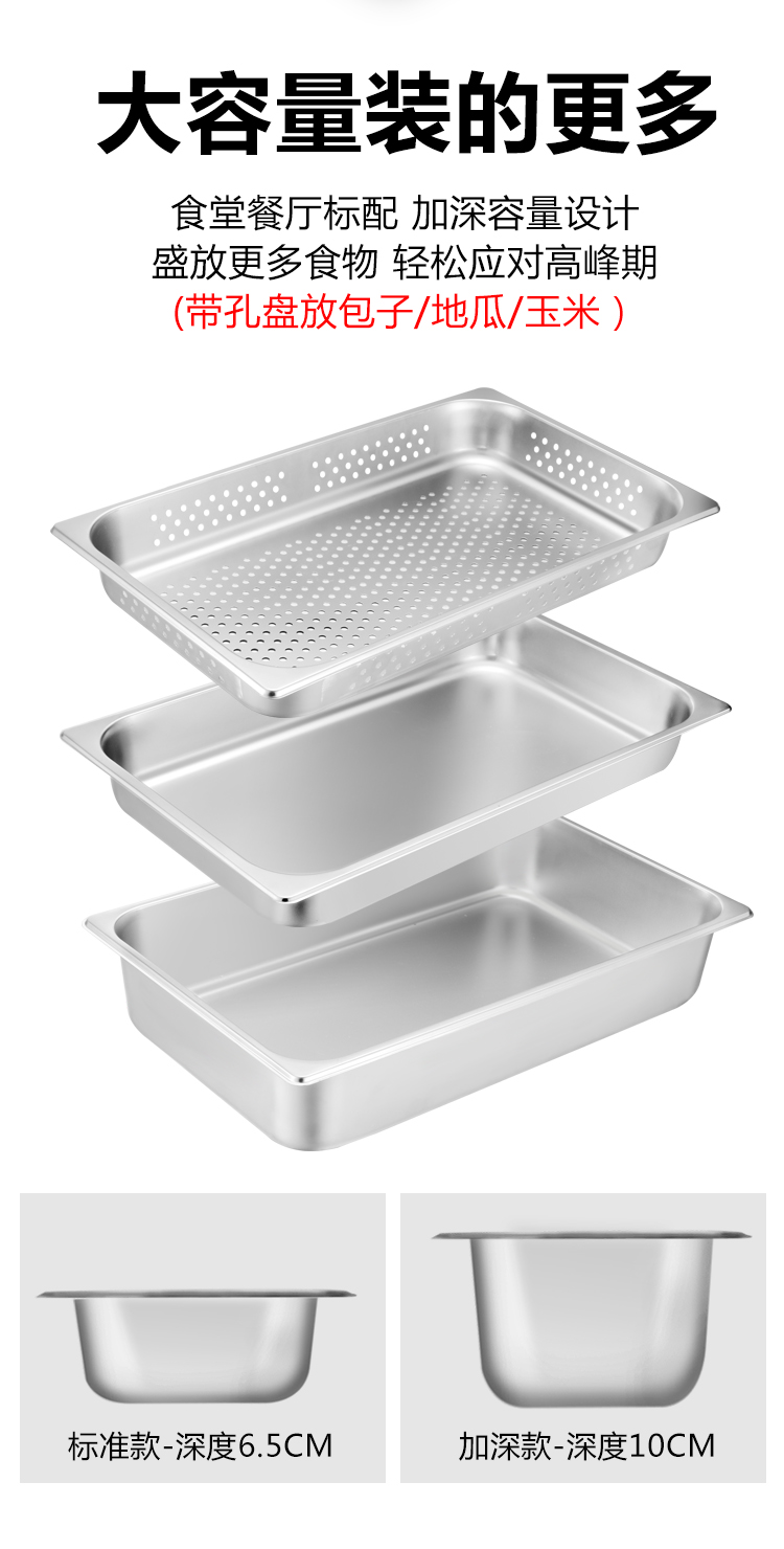 Stainless steel serving basin buffet stove plate Buffy stove inner pot buffet basin with lid 304 square food plate 1/2 stainless steel punched 6.5CM <thickened>