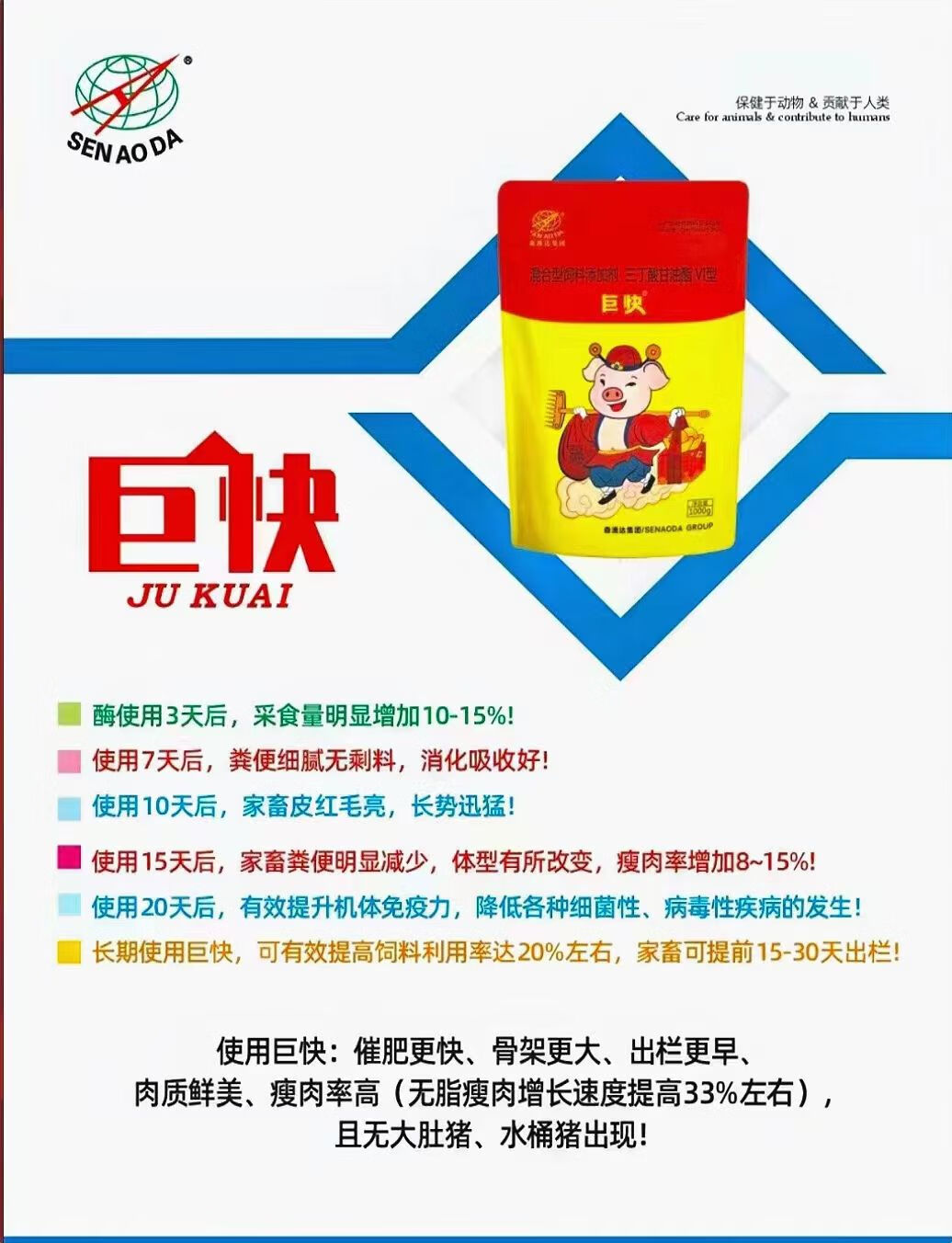 Senaoda Jukuai feed additive pig fattening, gaining weight, greedy and soaring, fattening pig day length three Jin Jin is equal to 0.5 kg, early slaughter, 1 big bag 1000 grams