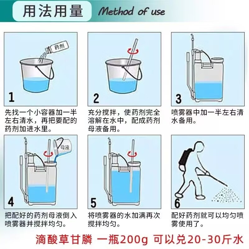 Powerful herbicide 95% glyphosate high concentration weed removal bagged factory direct sales wholesale rotten and dead roots 80g 10 sets