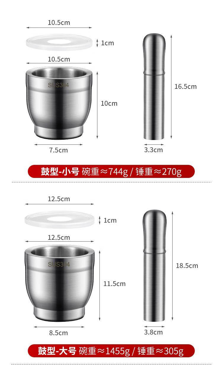 Fat Donglai's same stainless steel garlic masher 316 solid household grinder manual garlic masher garlic mortar medical grade 316 stainless steel - drum type large