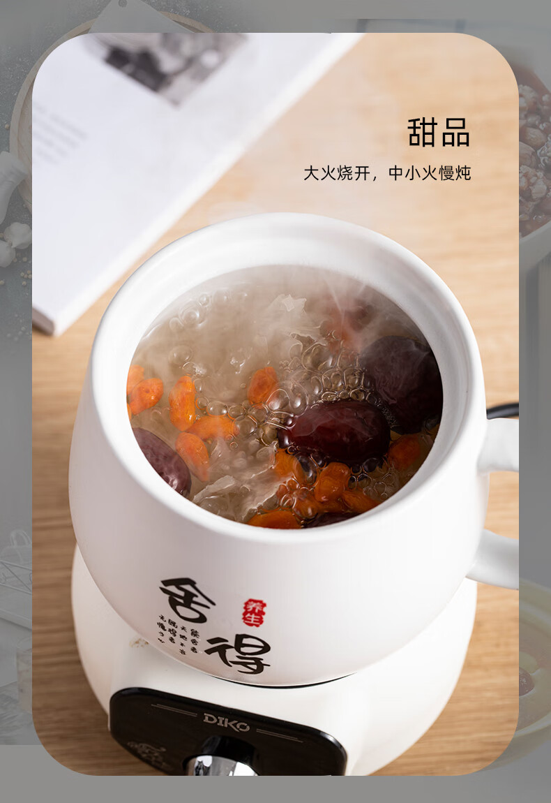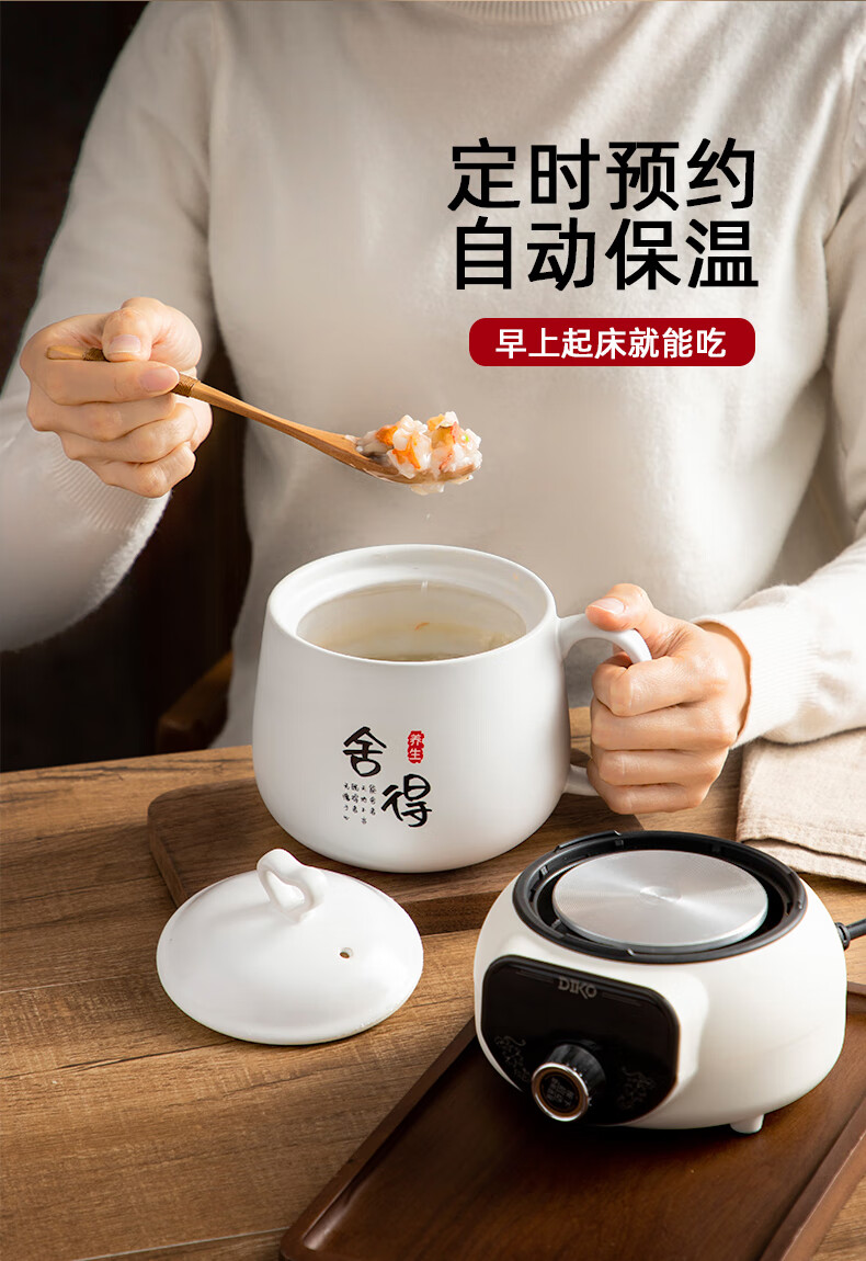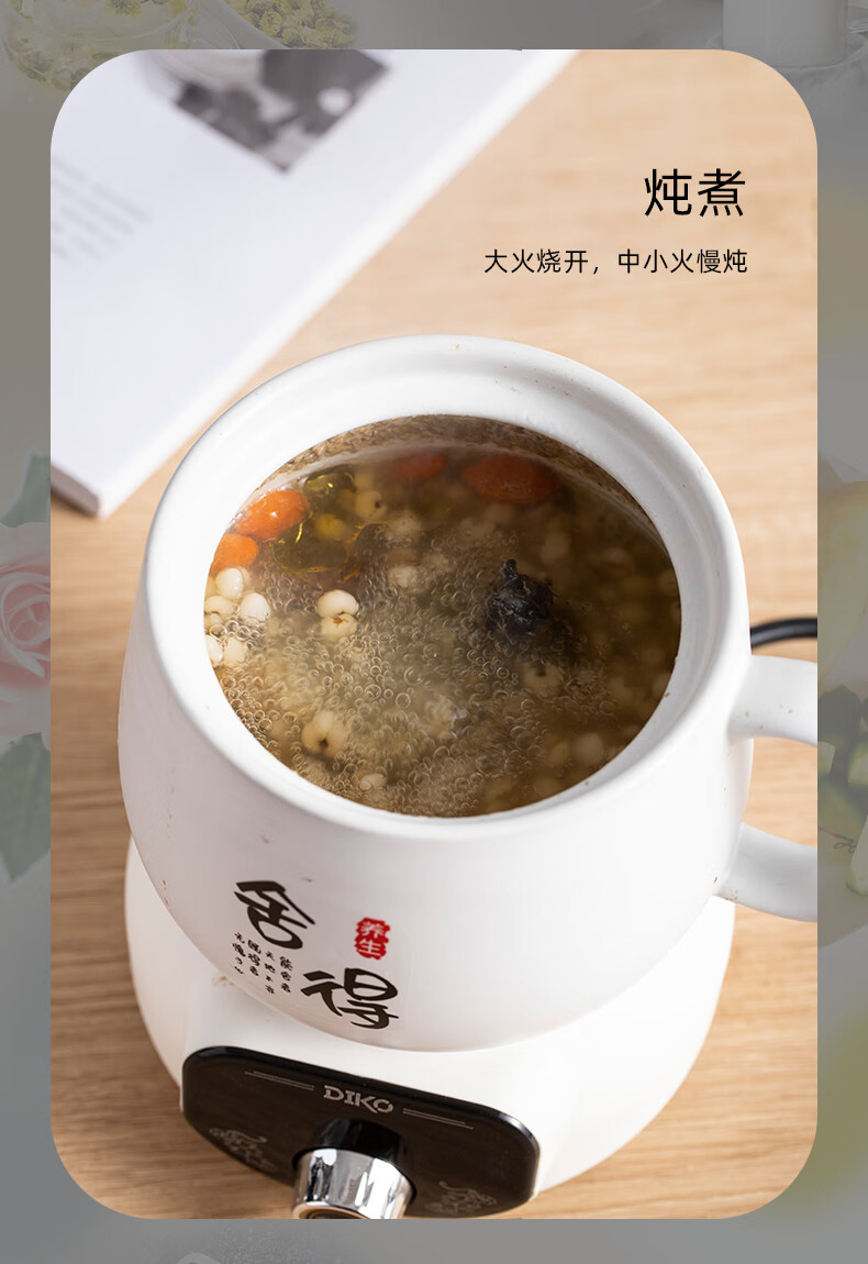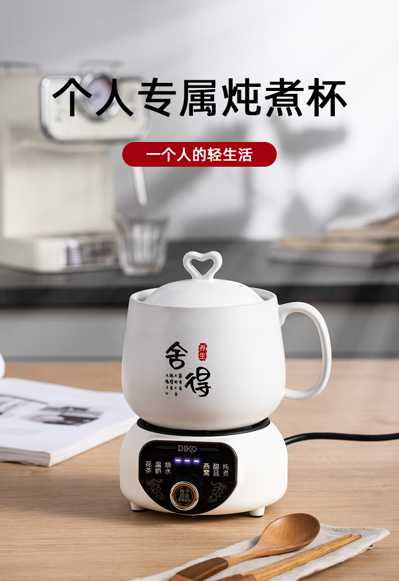 DIKO multifunctional health cup small stew pot soup pot ceramic bb porridge cooker electric stew pot fully automatic mini porridge pot household 1 person office tea and porridge artifact student white 1L casserole cup 400W smart base