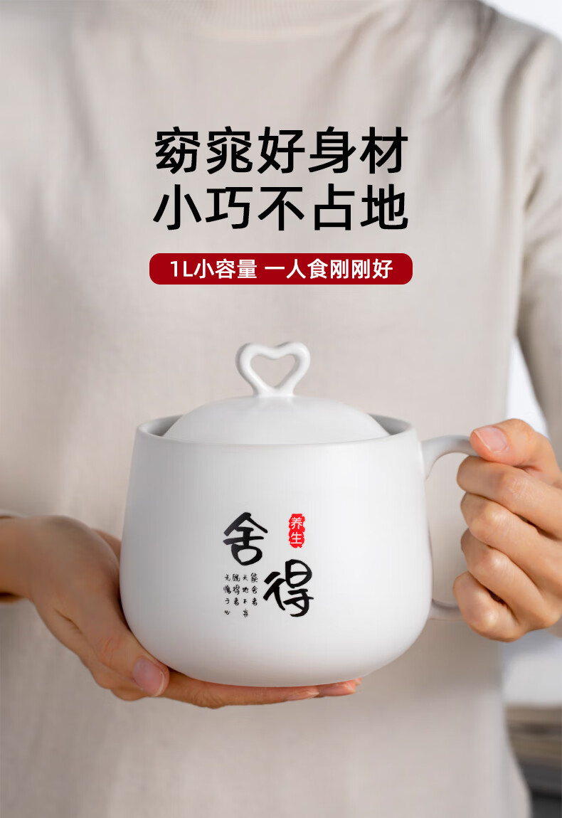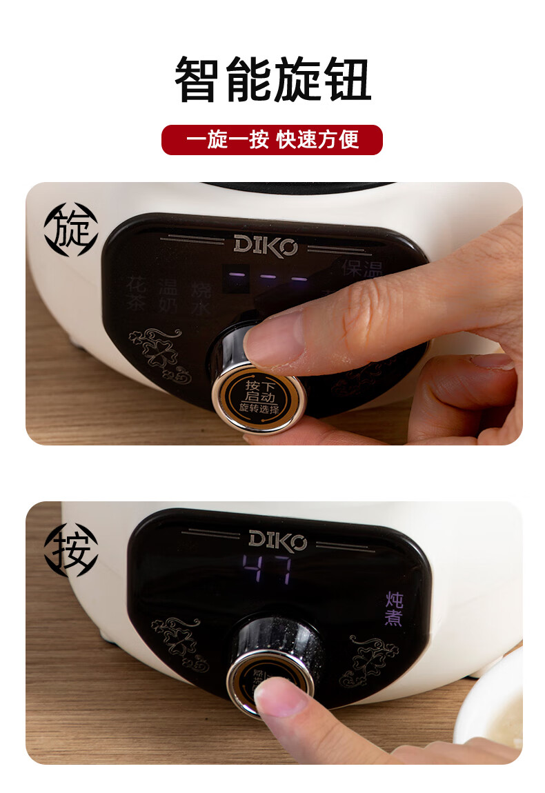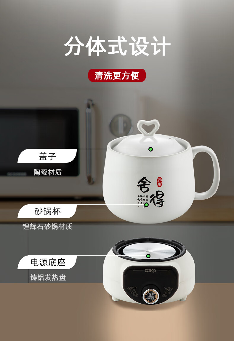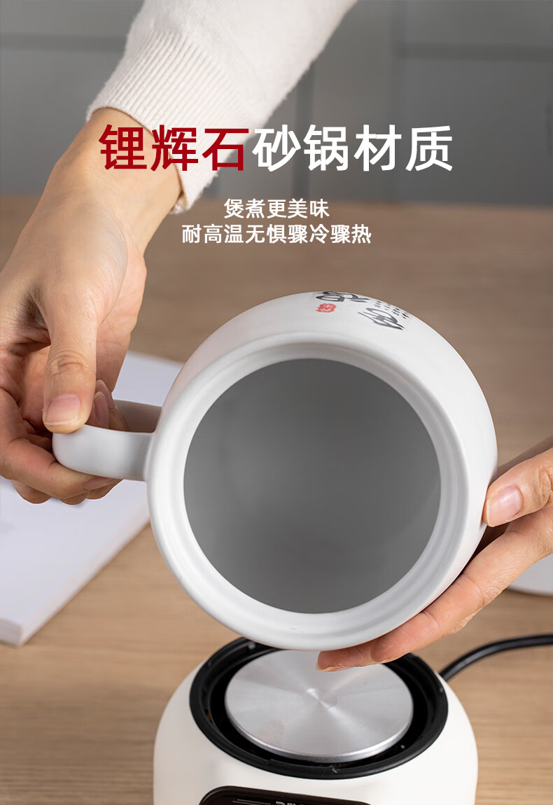 DIKO multifunctional health cup small stew pot soup pot ceramic bb porridge cooker electric stew pot fully automatic mini porridge pot household 1 person office tea and porridge artifact student white 1L casserole cup 400W smart base
