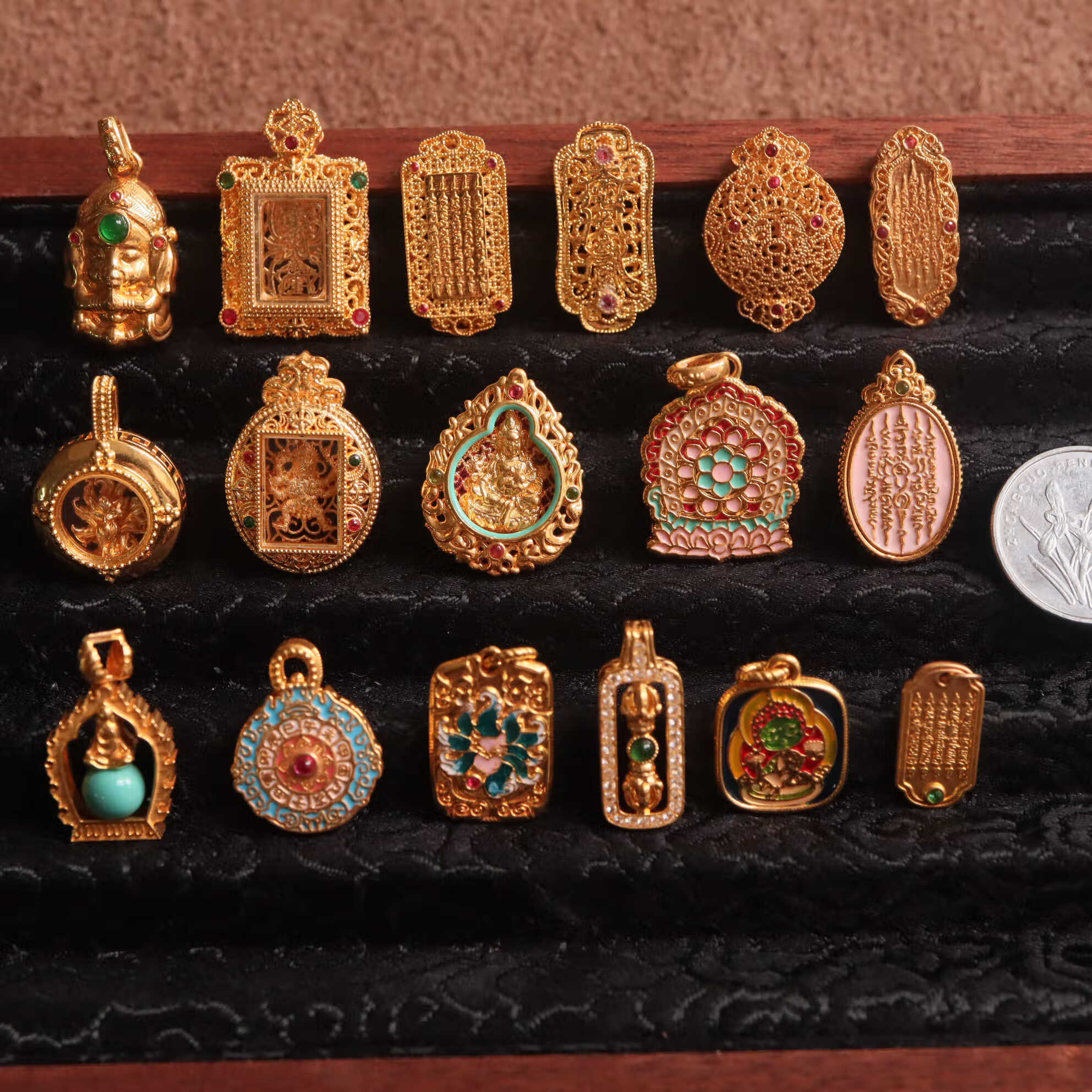 Library selects 18K gold gold DIY accessories jewelry ancient gold diamond pendant design enamel green Tara Mahakala AU750 18K gold pendant nine-tailed fox black box, size approx. 2