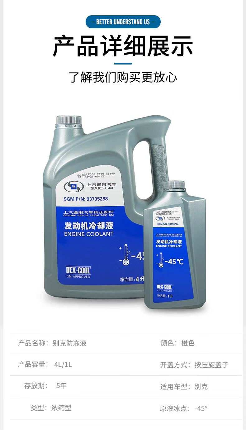 Chevrolet Buick original antifreeze Yinglang Caiyue LaCrosse Verano SAIC-GM Cruze water tank water coolant 1L -45 red Shanghai GM antifreeze orange red