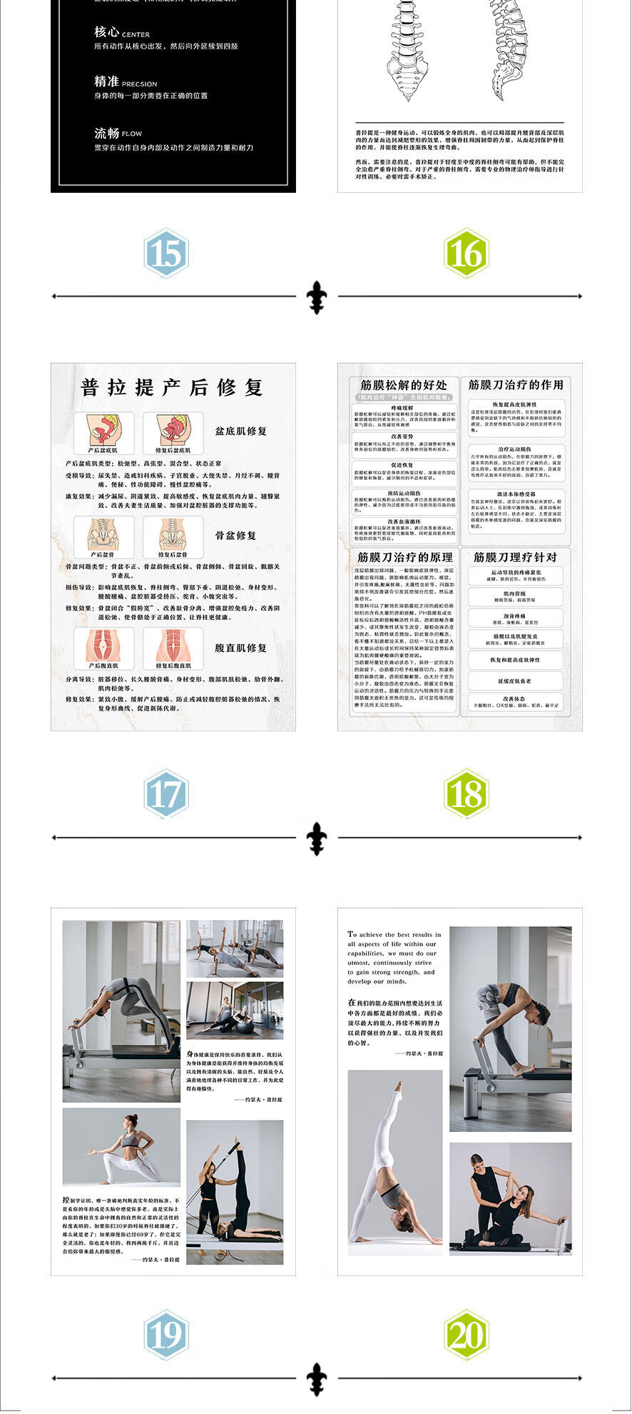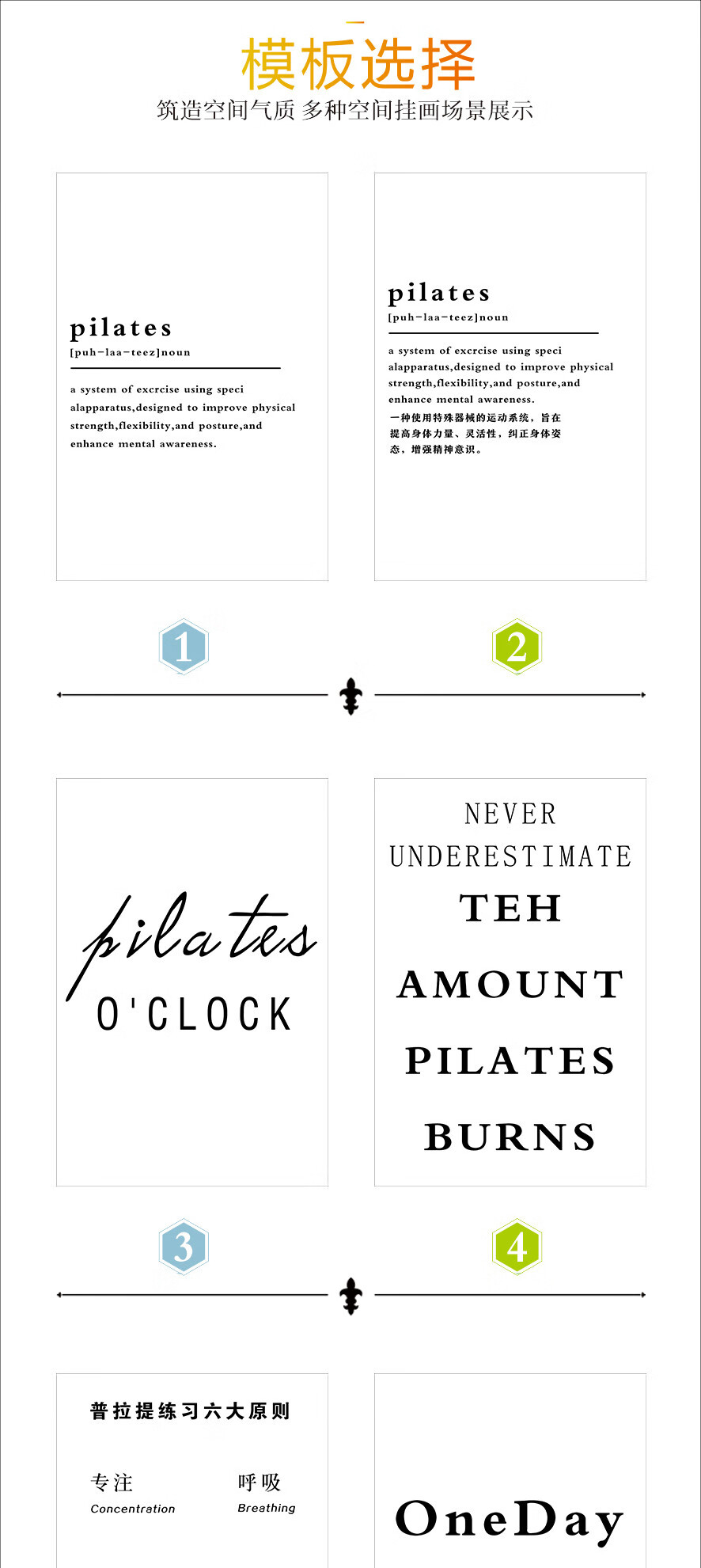 Jingtu Pilates decoration hanging painting yoga studio training classroom wall poster gym shaping studio cultural mural 15 six principles 40 width x 60 height cm KT board + gold PVC