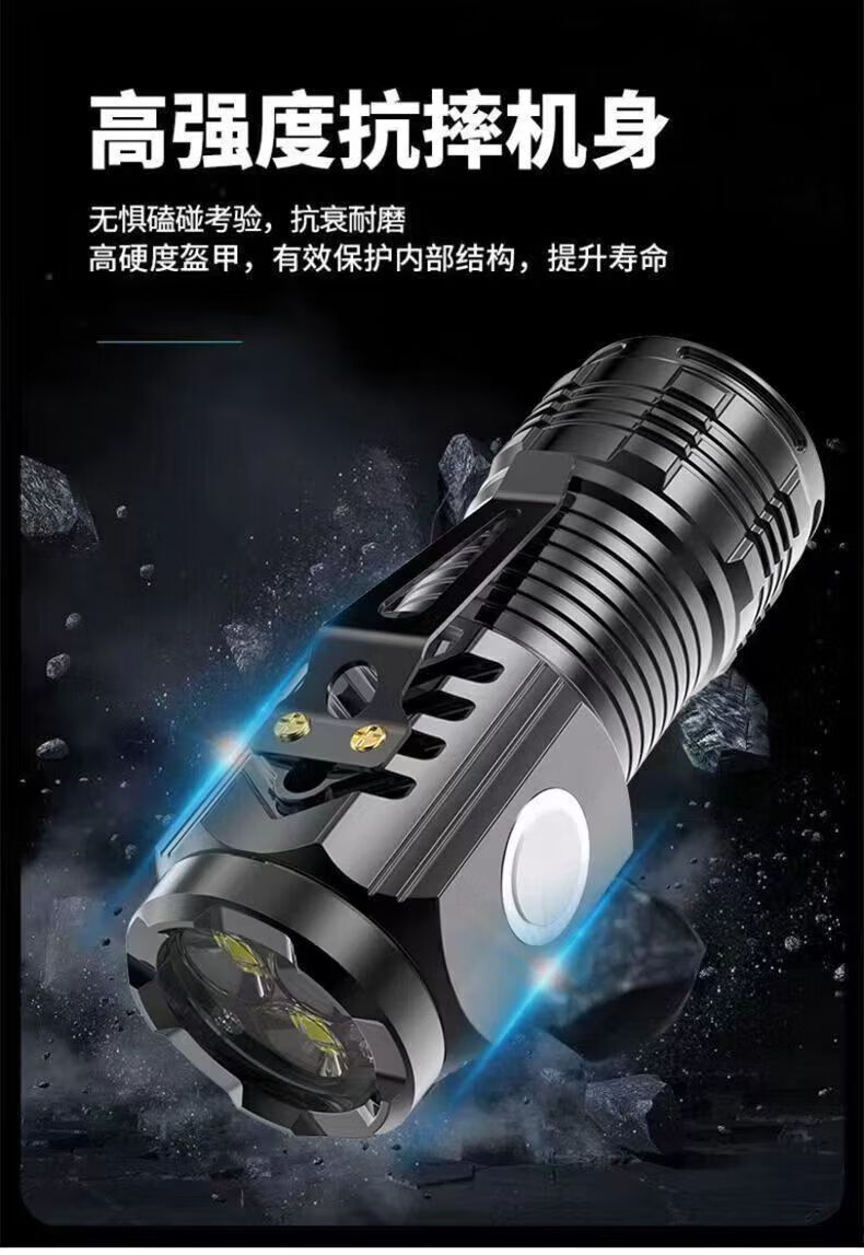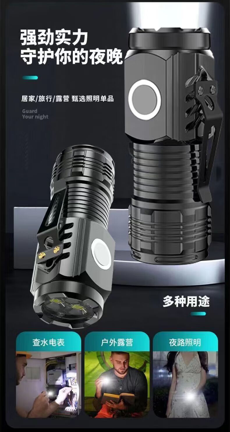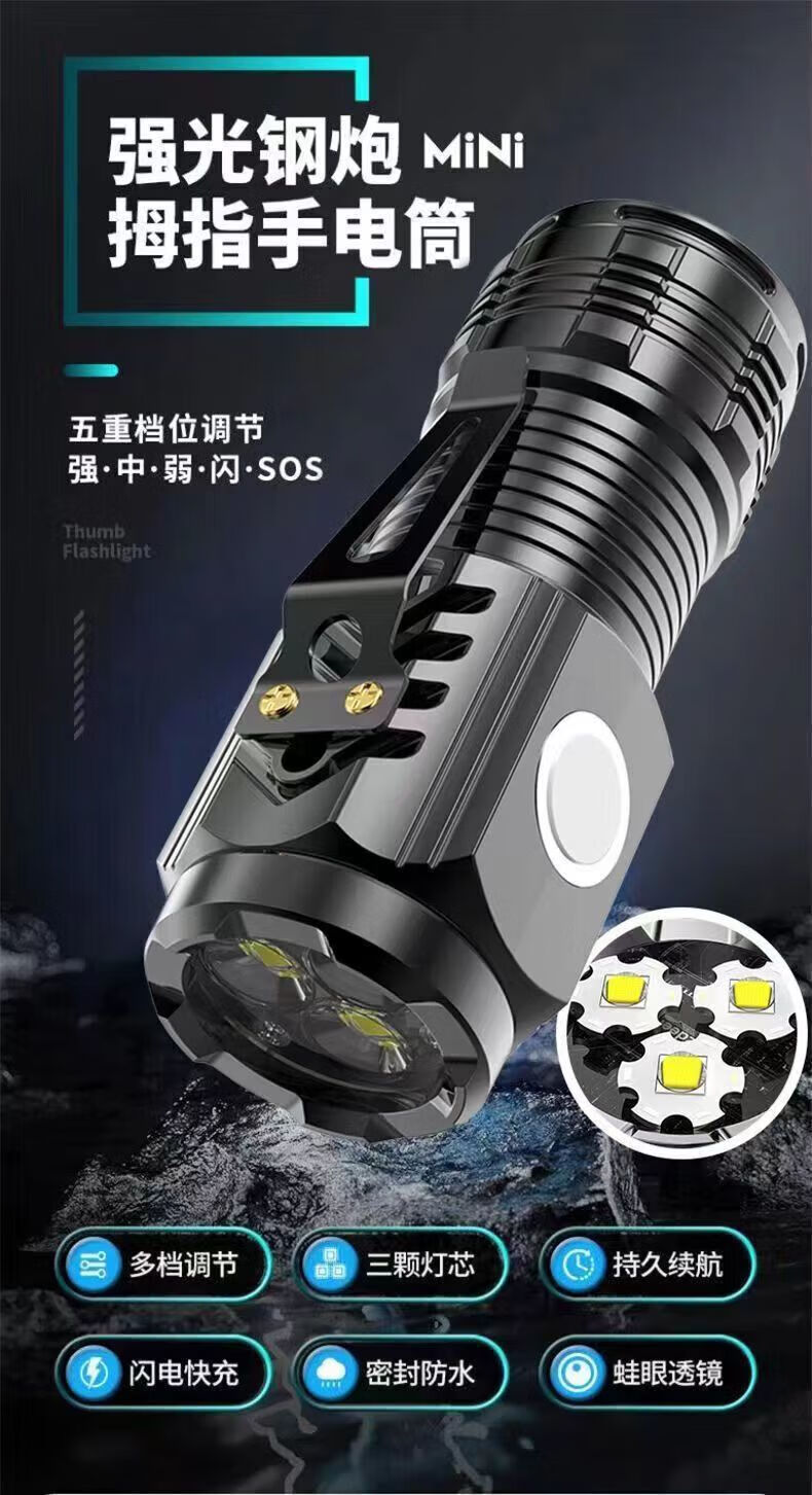 One-point purchase of super bright mini LED strong light flashlight, rechargeable three-eye outdoor lighting, long-range portable small steel cannon, three-core upgrade 3998N, super bright + flash