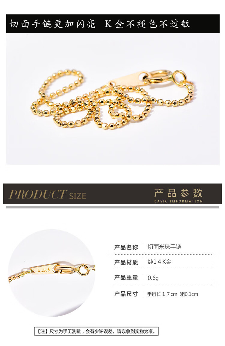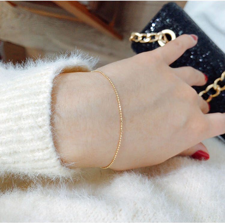 Library selected Korean popular 14K gold bracelet single layer rice bead chain simple fashion super flash temperament literary women 16cm