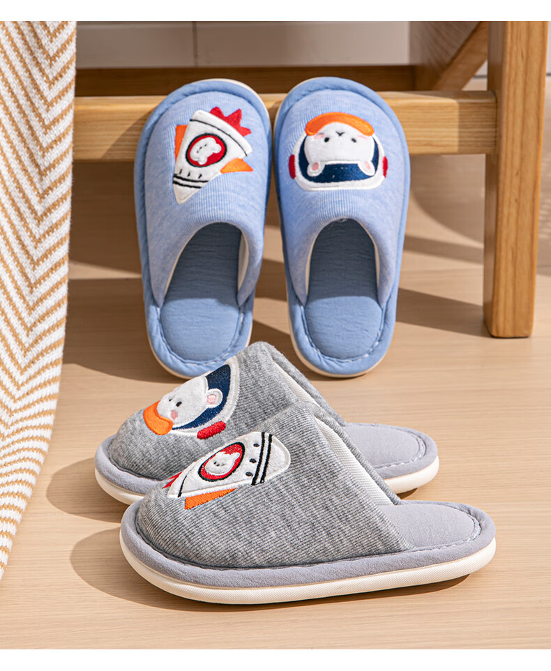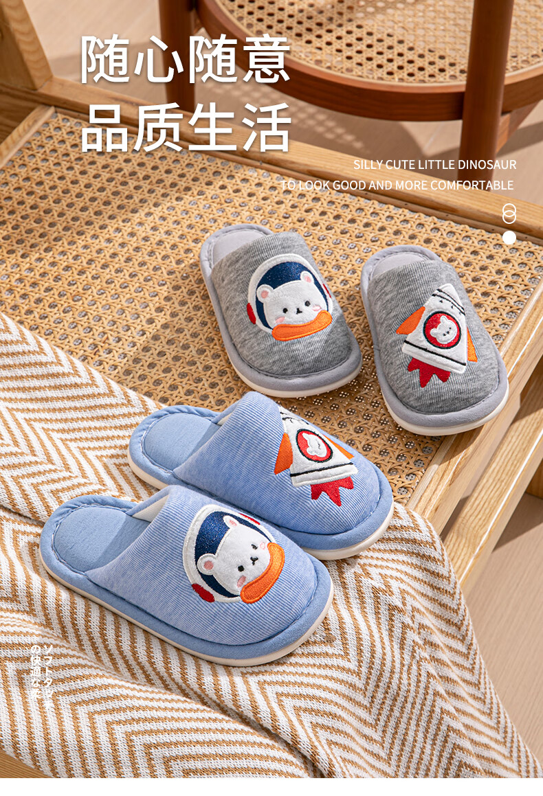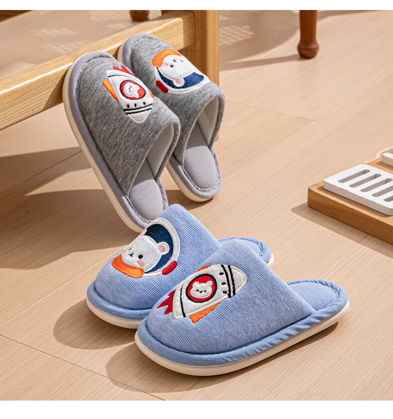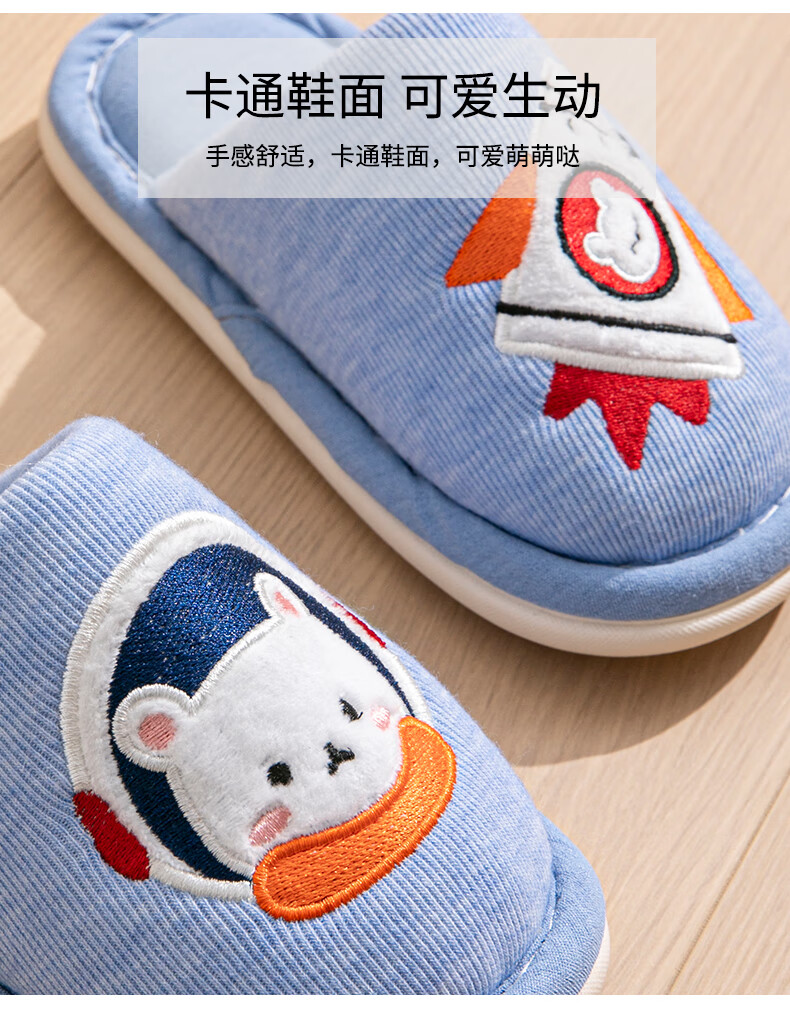 Robot Pig Children's Slippers Spring and Autumn Baotou Boys and Girls Home Breathable Non-Slip Cotton Slippers for Middle and Large Children Children Blue Size 30-31 Inner Length 19cm