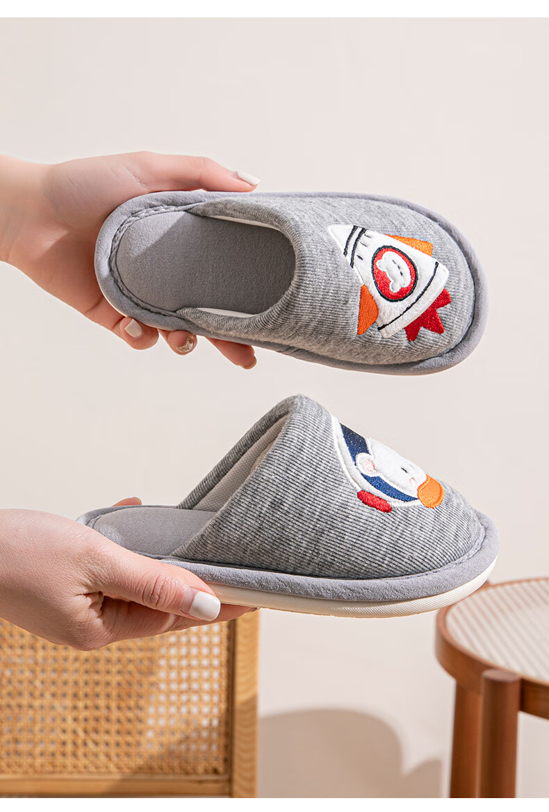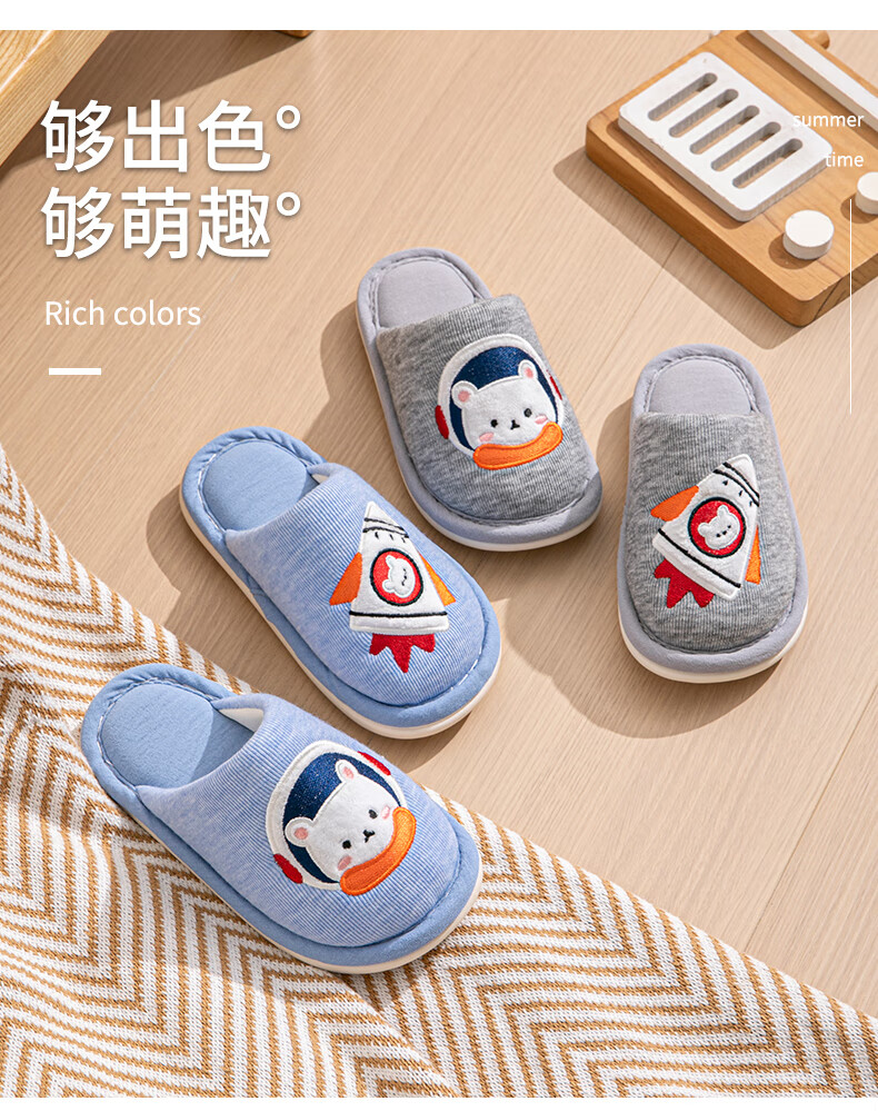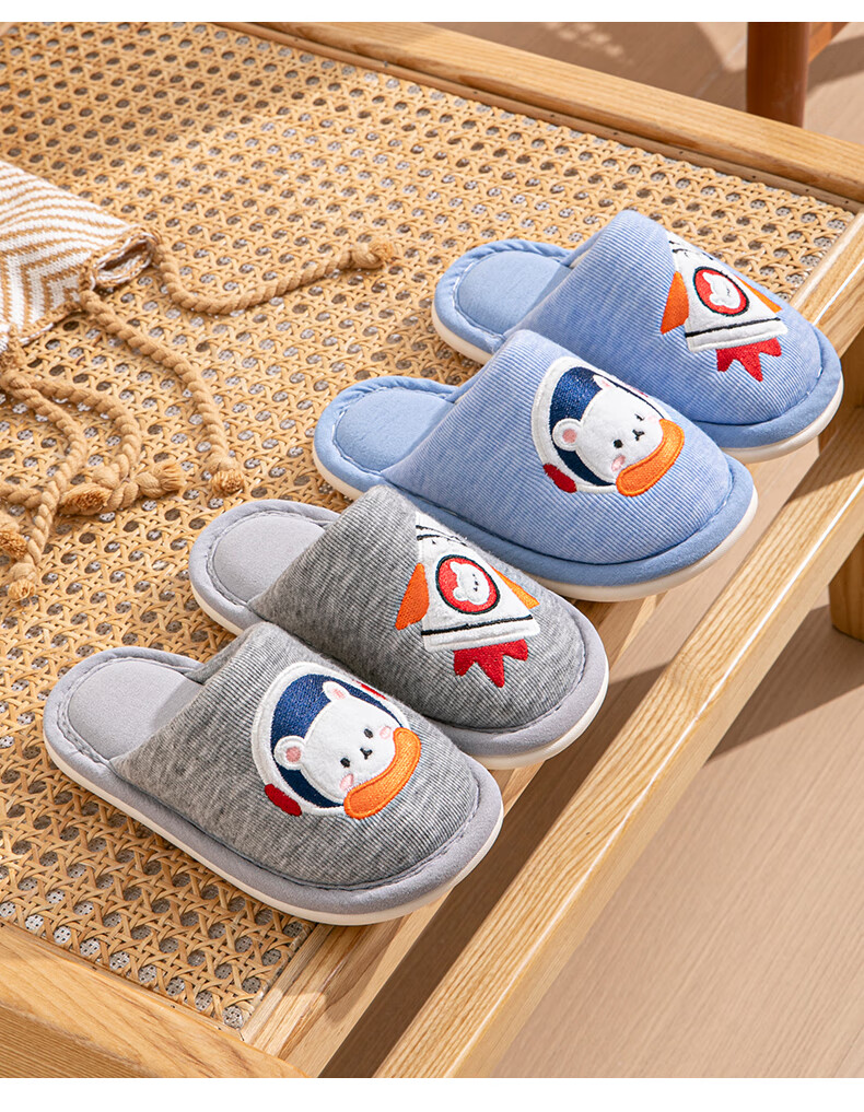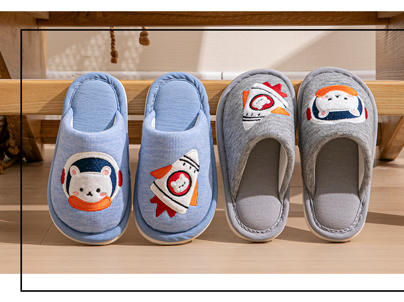Robot Pig Children's Slippers Spring and Autumn Baotou Boys and Girls Home Breathable Non-Slip Cotton Slippers for Middle and Large Children Children Blue Size 30-31 Inner Length 19cm