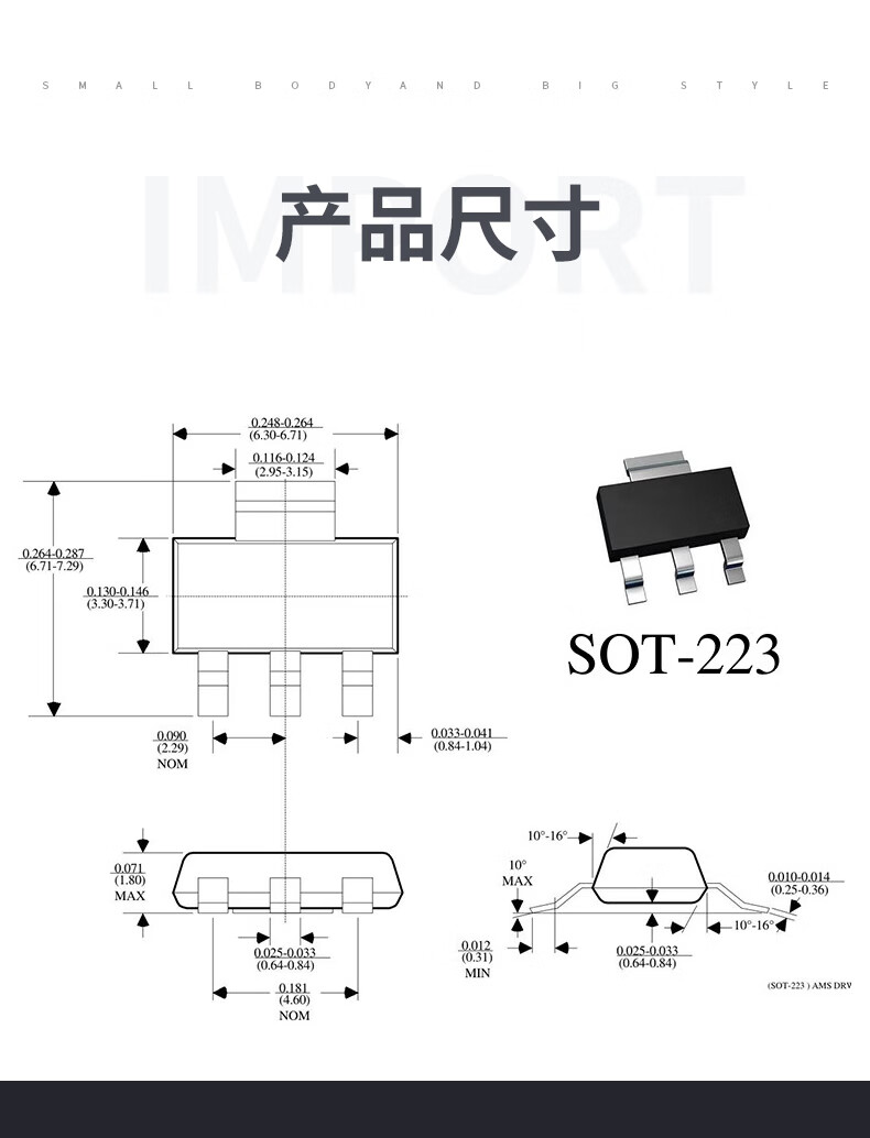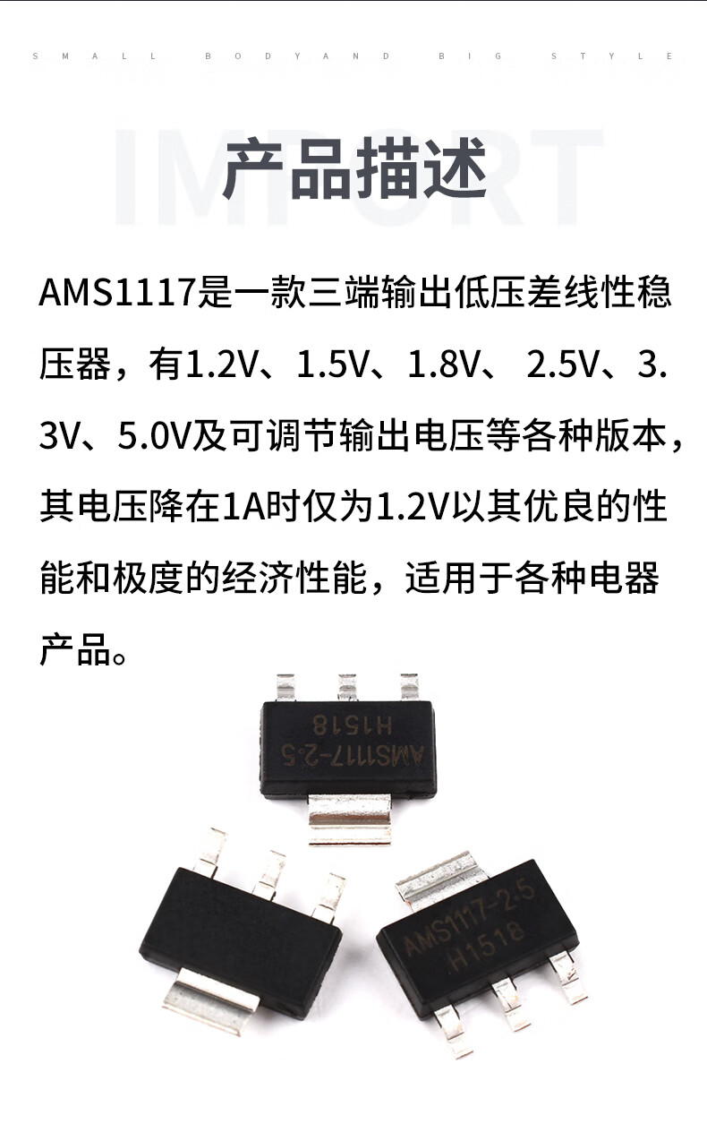 AMS1117-3.3V1.2V1.5V1.8V2.5V5.0VADJ voltage regulator chip SOT223 power supply AMS1117-3.3V package SOT223 (10 pieces) No Specifications