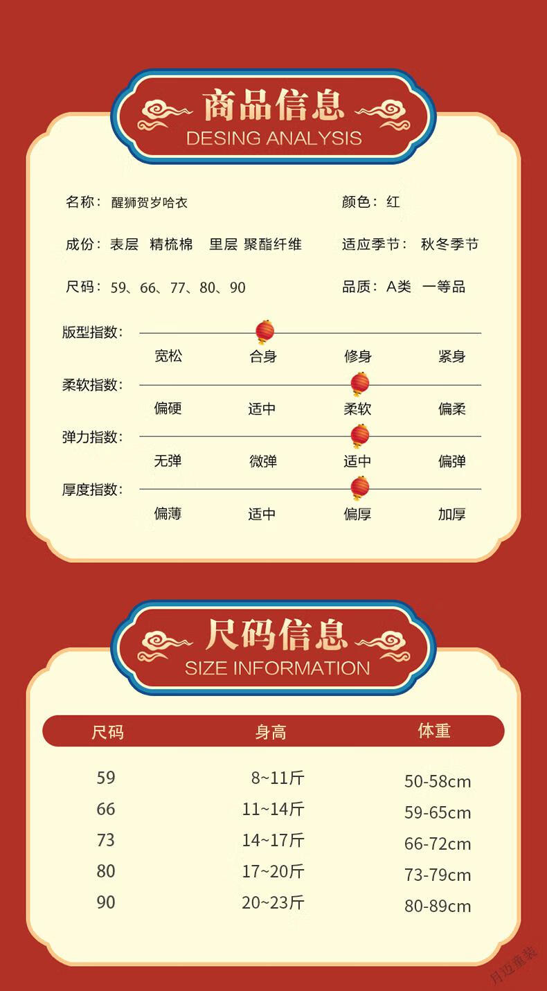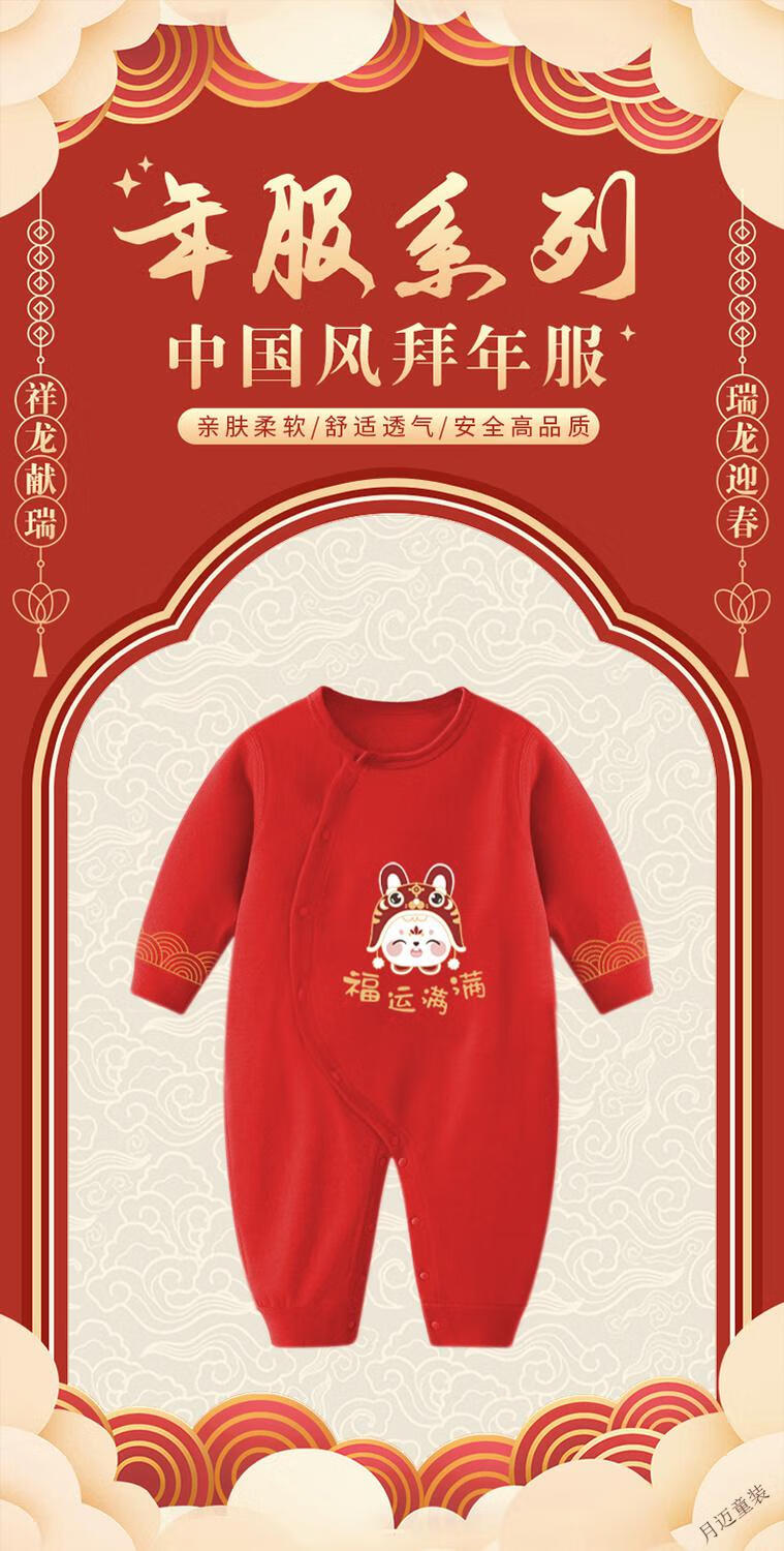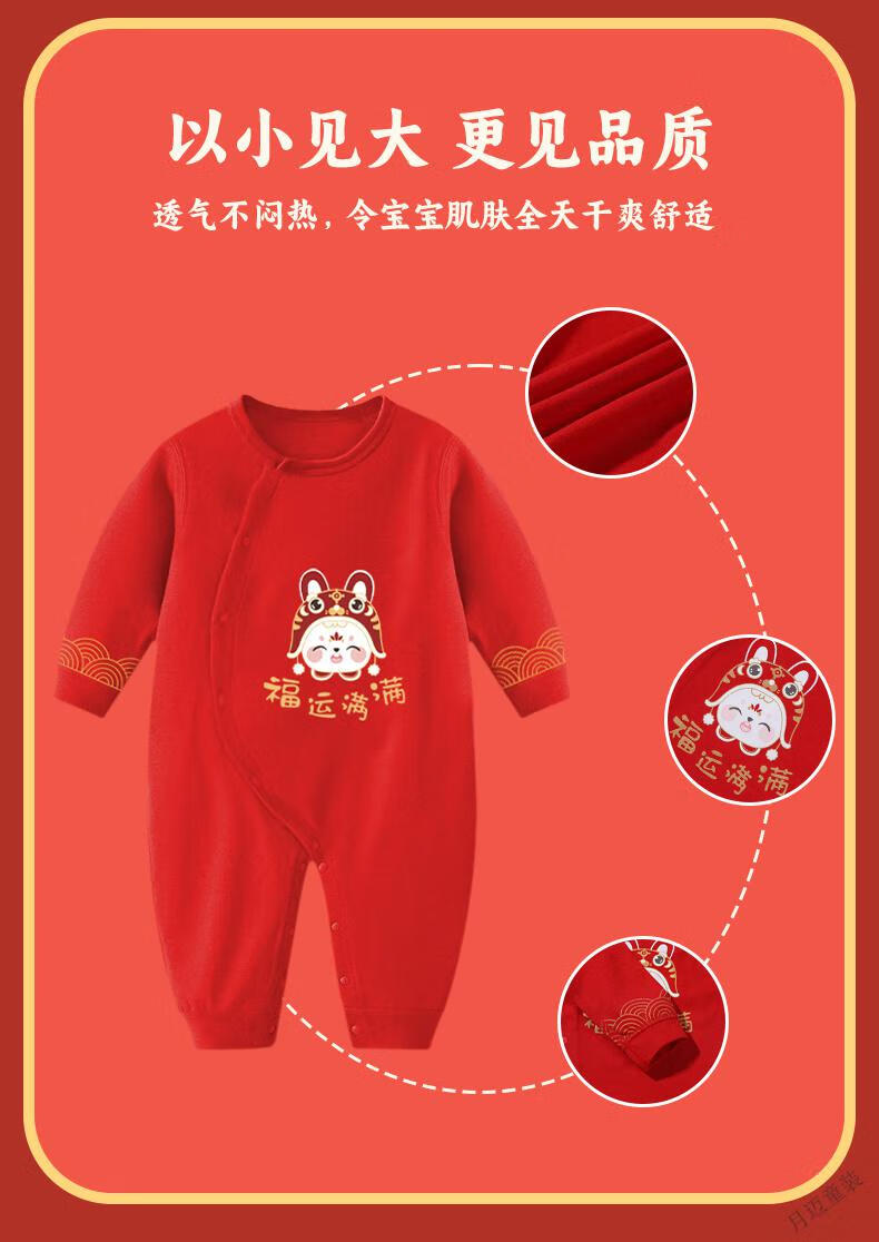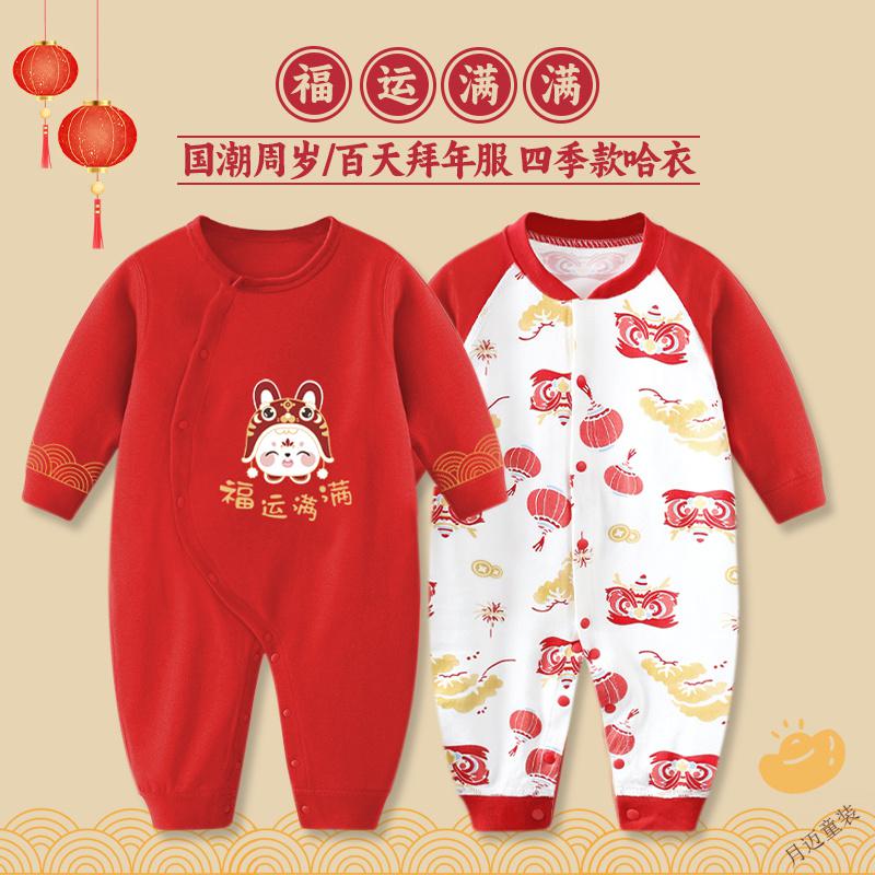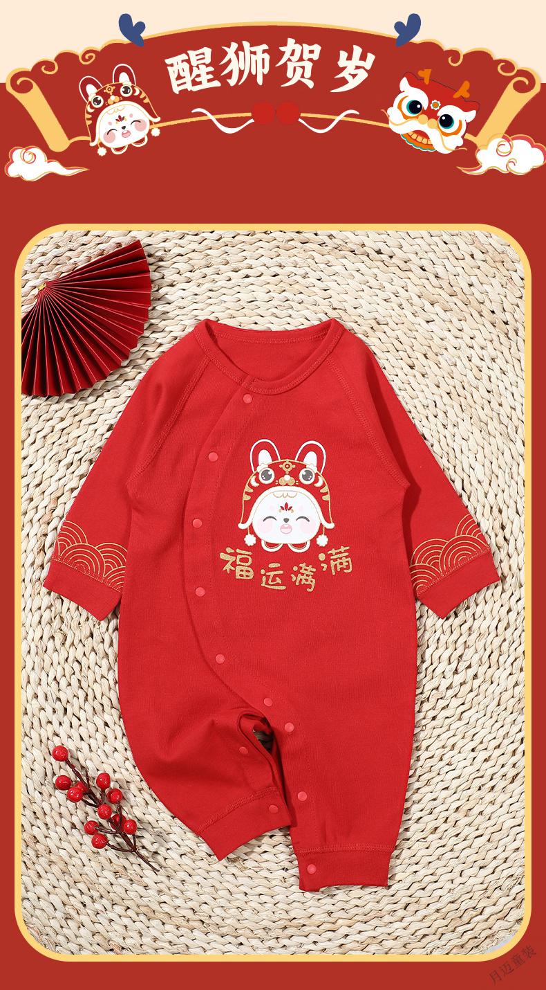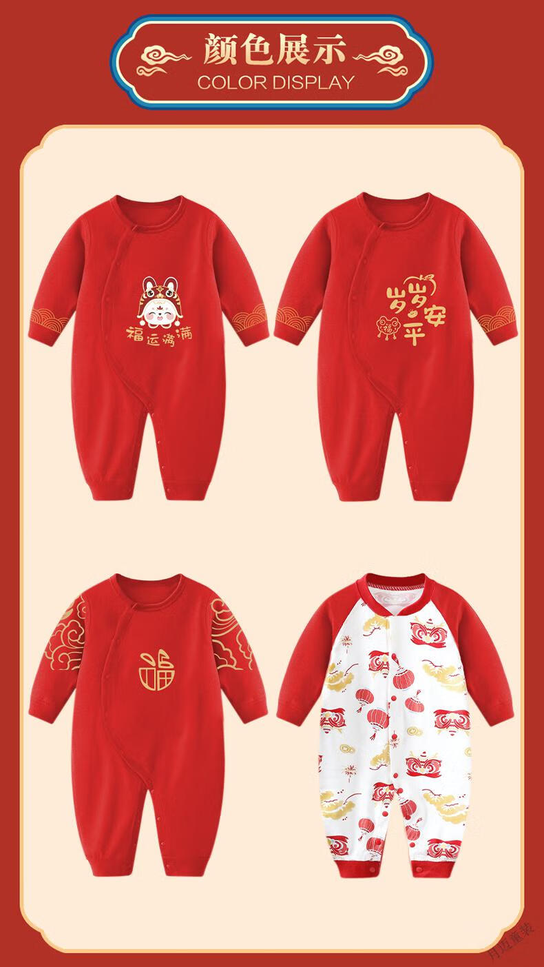 Disney (Disney) Newborn Newborn Spring and Autumn Four Seasons New Year Red Full Moon Baby Clothes Thin Cotton One-year-old Catching Weekly Lian, Full of Good Luck + Lion Awakening to Celebrate the New Year, Four Seasons 59cm 59