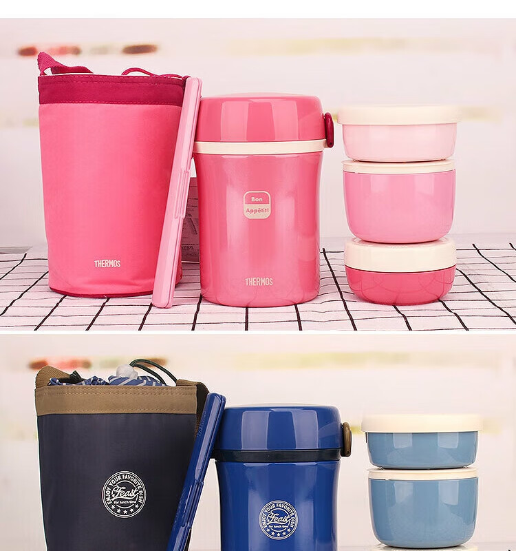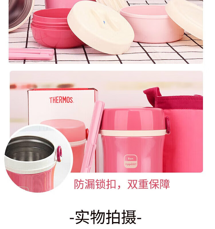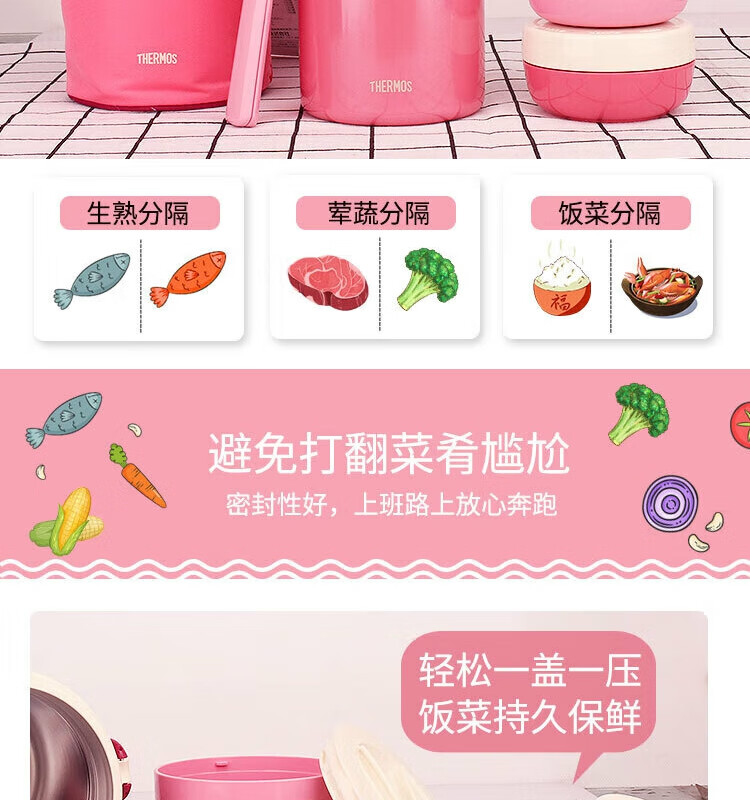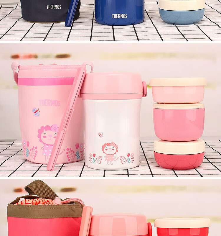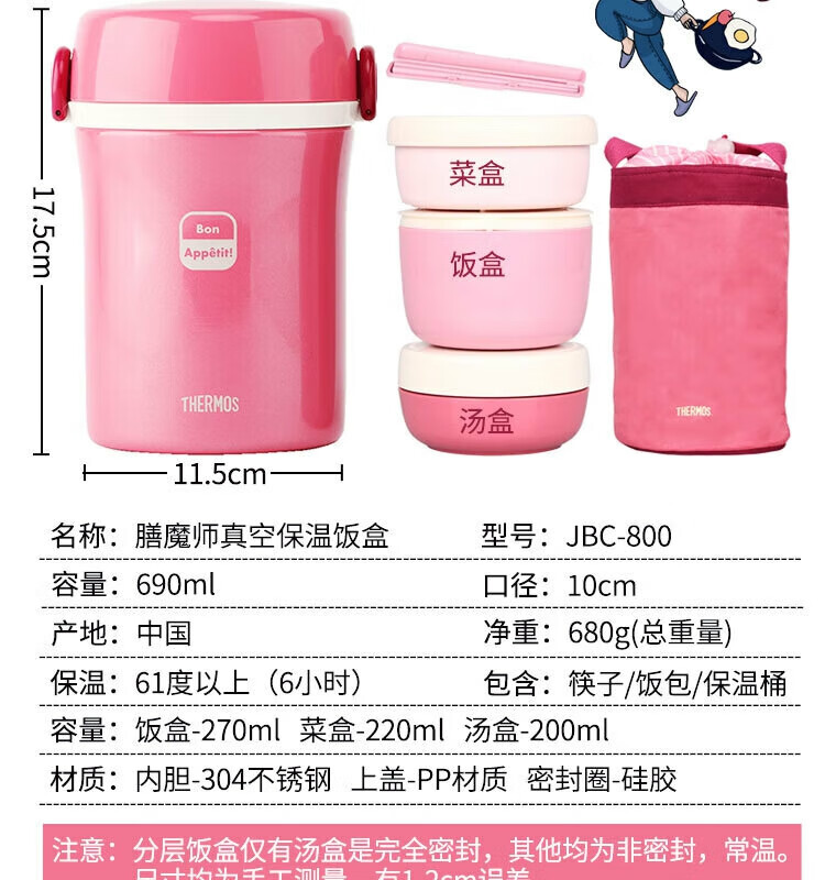 Thermos' new JBC-801 portable thermal bucket for children, infants and students, stainless steel thermal insulation lunch box, school lunch box, JBC-801 light pink, very small capacity, 3 layers, 690ml