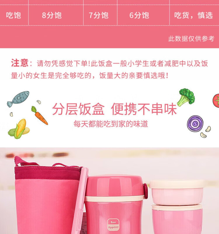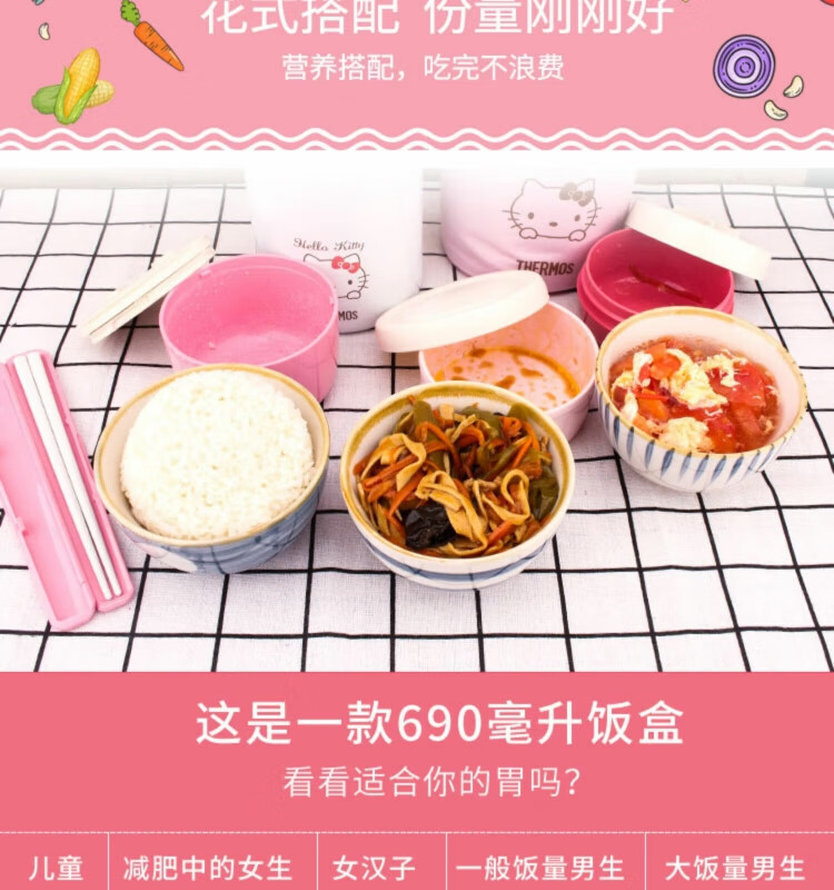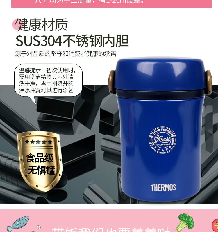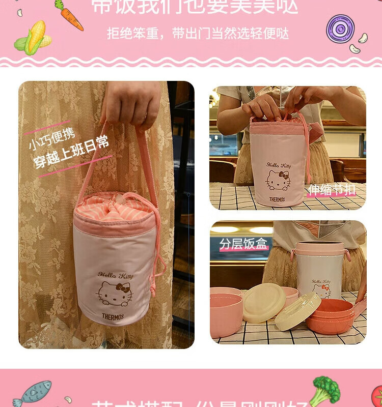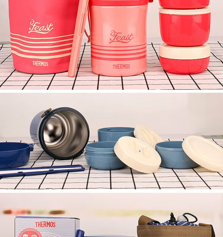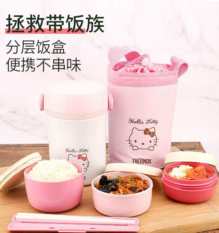 Thermos' new JBC-801 portable thermal bucket for children, infants and students, stainless steel thermal insulation lunch box, school lunch box, JBC-801 light pink, very small capacity, 3 layers, 690ml