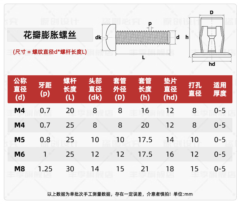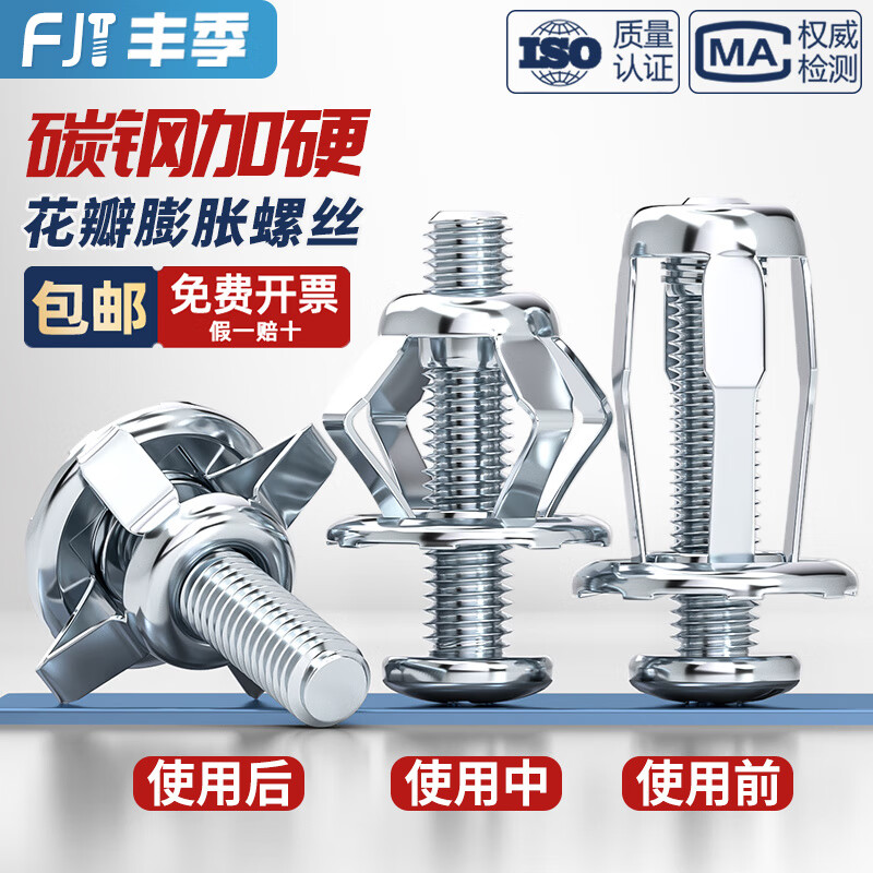 Fengji petal expansion screw nut rivet rivet fixed buckle hollow iron bolt hollow gecko screw collection M4*20 (5 pieces) plate thickness 0-5mm punching 8mm