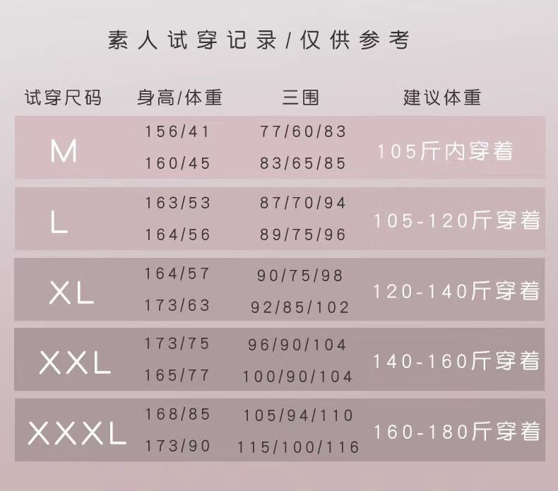 China (cm) 160-165/84-86 165-170 / 88-90 167-172 / 92-96 168-173 / 98-102 170-176 / 106-110
