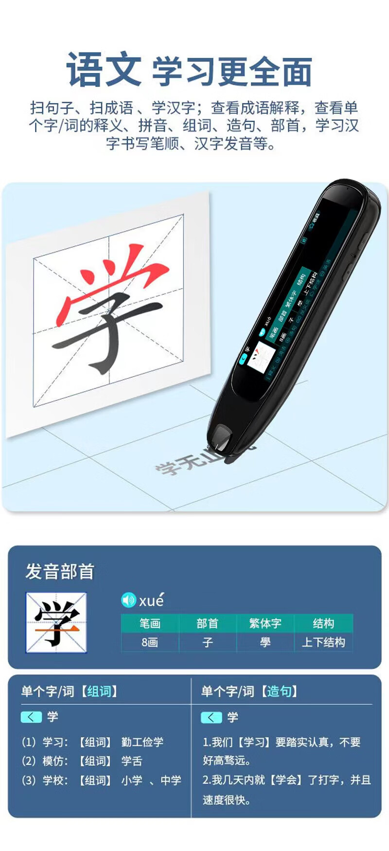 Alpha English Dictionary Pen, Universal Offline Translation, Multi-Function Intelligent Learning Machine for Scanning and Reading, White Version 512G/Photography + Scanning and Problem Solving/General Subject Video Explanation/Screen Projection, Brand New and Unopened/Automatically Update Vocabulary Textbook
