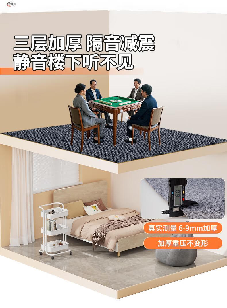 Xinjinngle soundproof floor mat ultra-quiet mahjong machine chess and card room floor thickened mahjong table shock-absorbing noise reduction shock-proof silent carpet gray single stripe-TPE 6mm 40*60cm