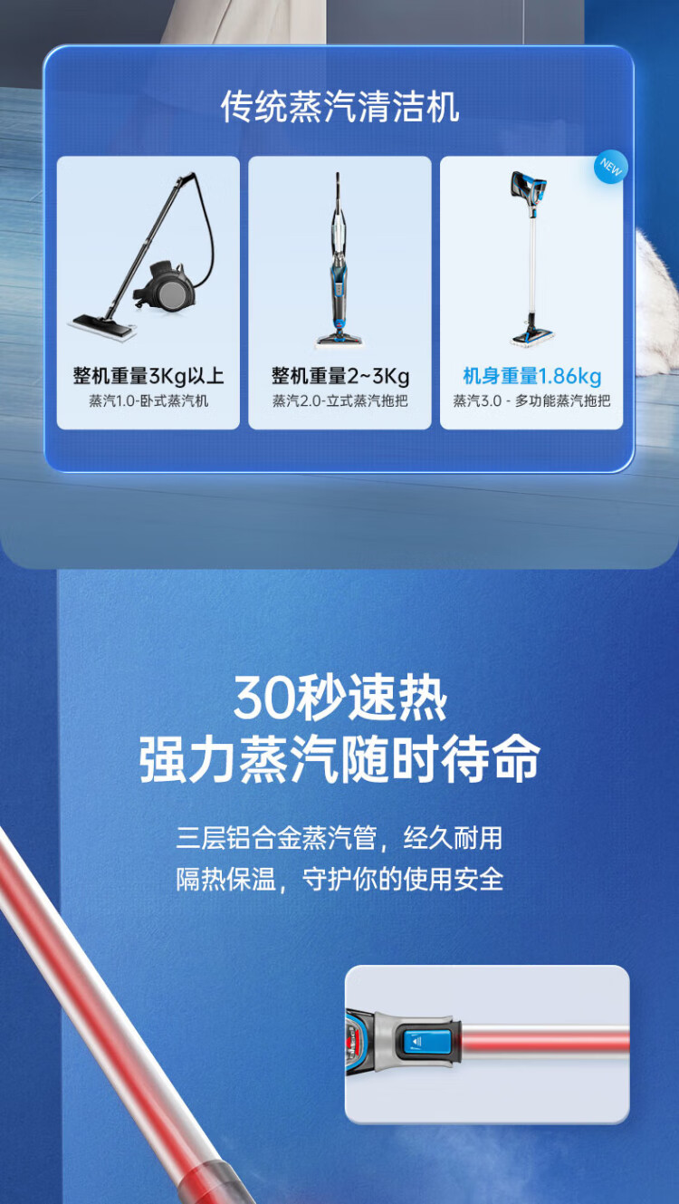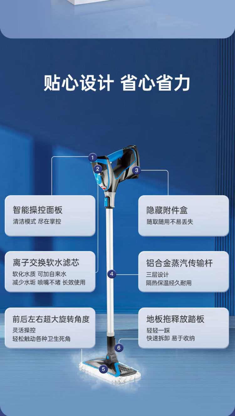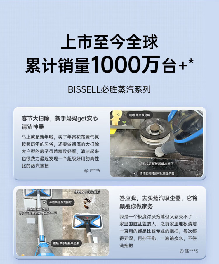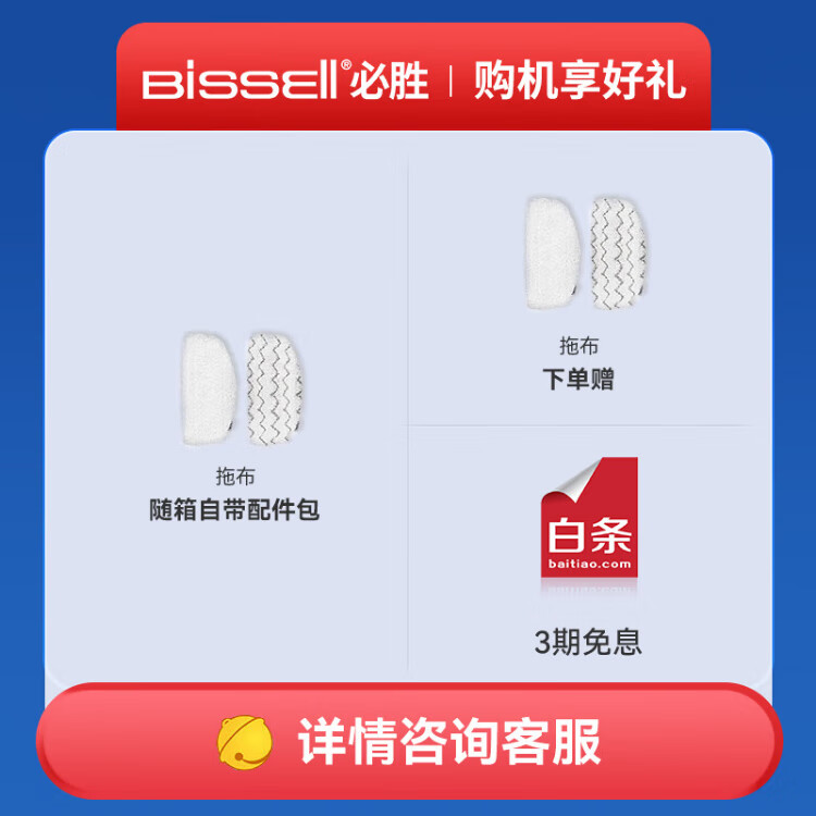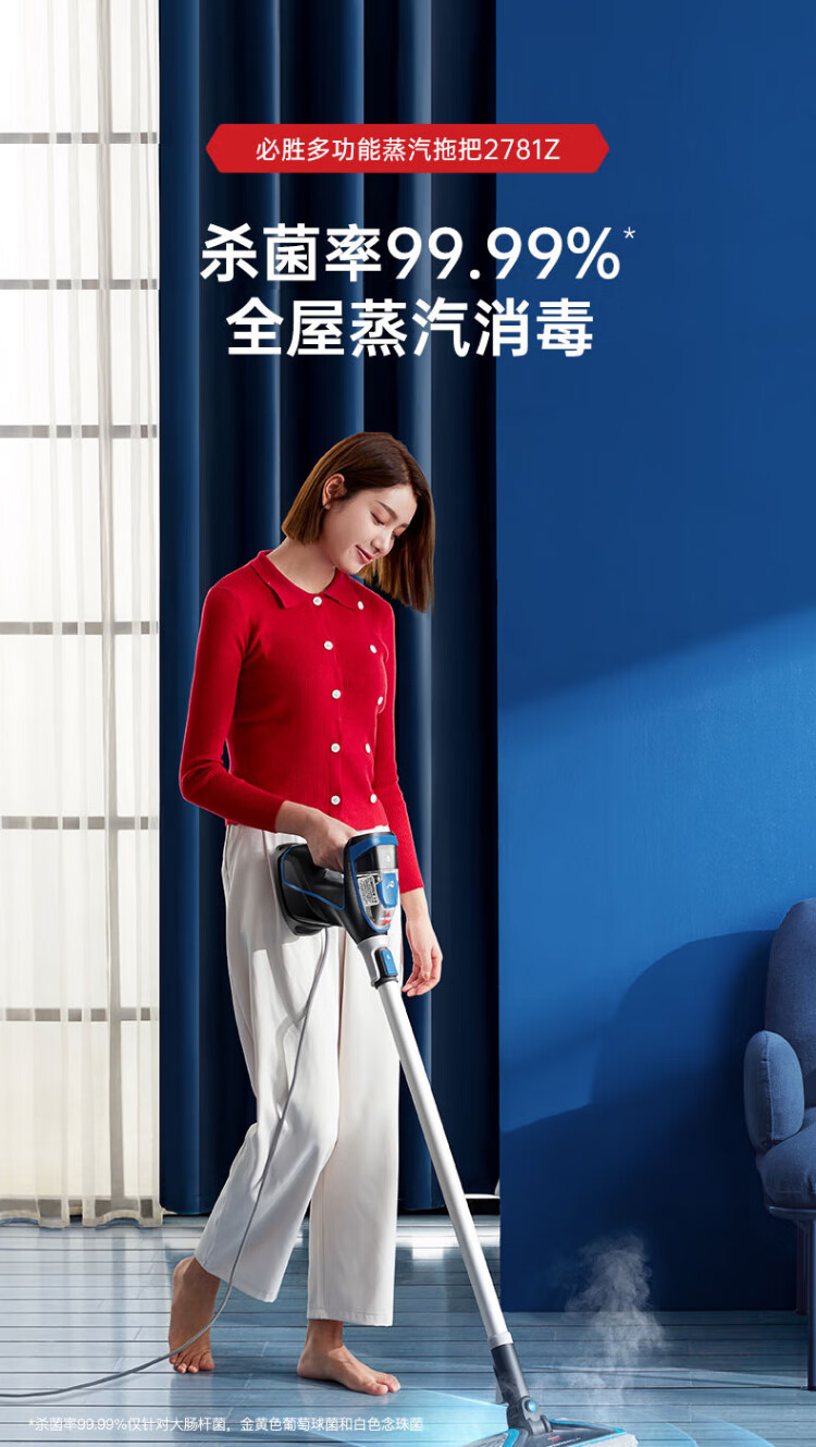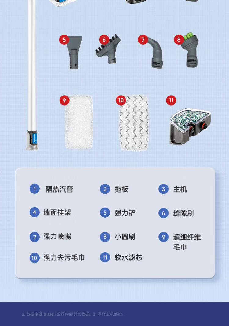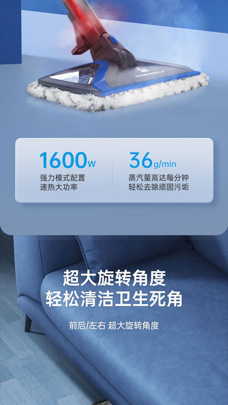 BISSELL Household Steam Mop Floor Mopping Cleaning Machine High Temperature Steam Sterilization and Mite Removal Electric Handheld Cleaner Vacuum Cleaner Companion 2781Z Accessories Package B Standard + Replacement Mop*6 Sets