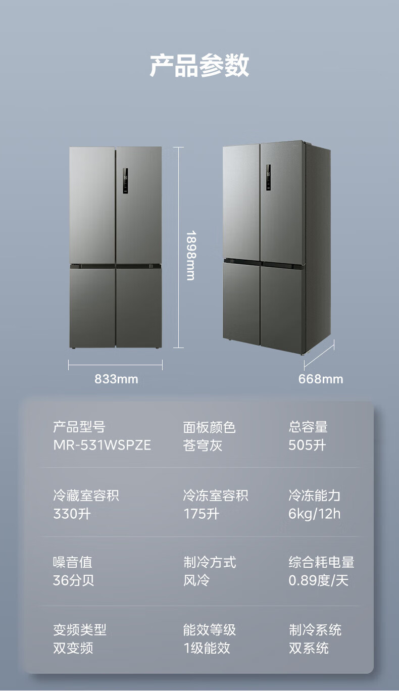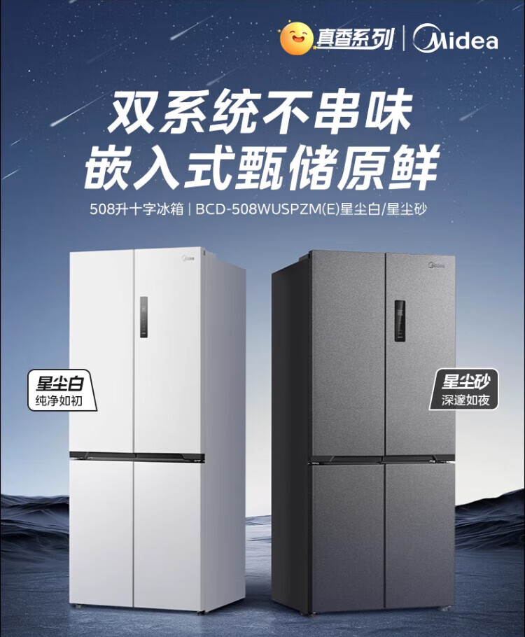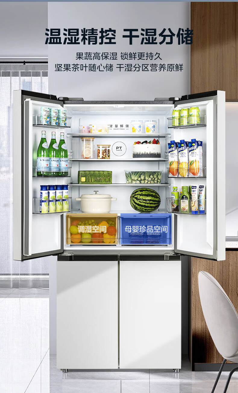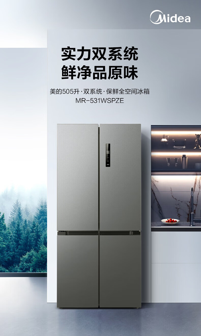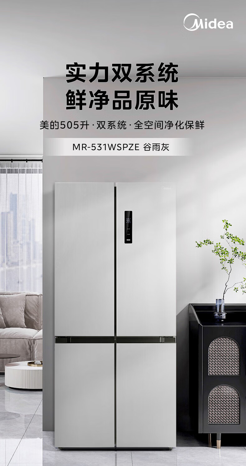 Midea refrigerator 531/508 cross-door four-door dual-system dual-cycle energy-efficient air-cooled frost-free dual-frequency large-capacity household refrigerator wifi intelligent control 531 dual-system full-space fresh-keeping refrigerator