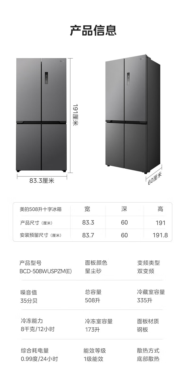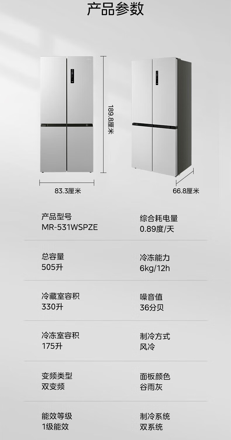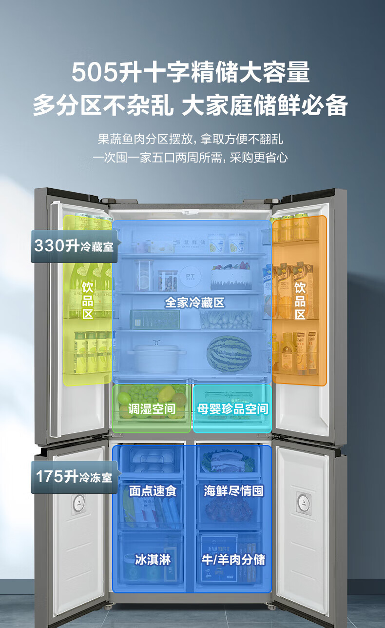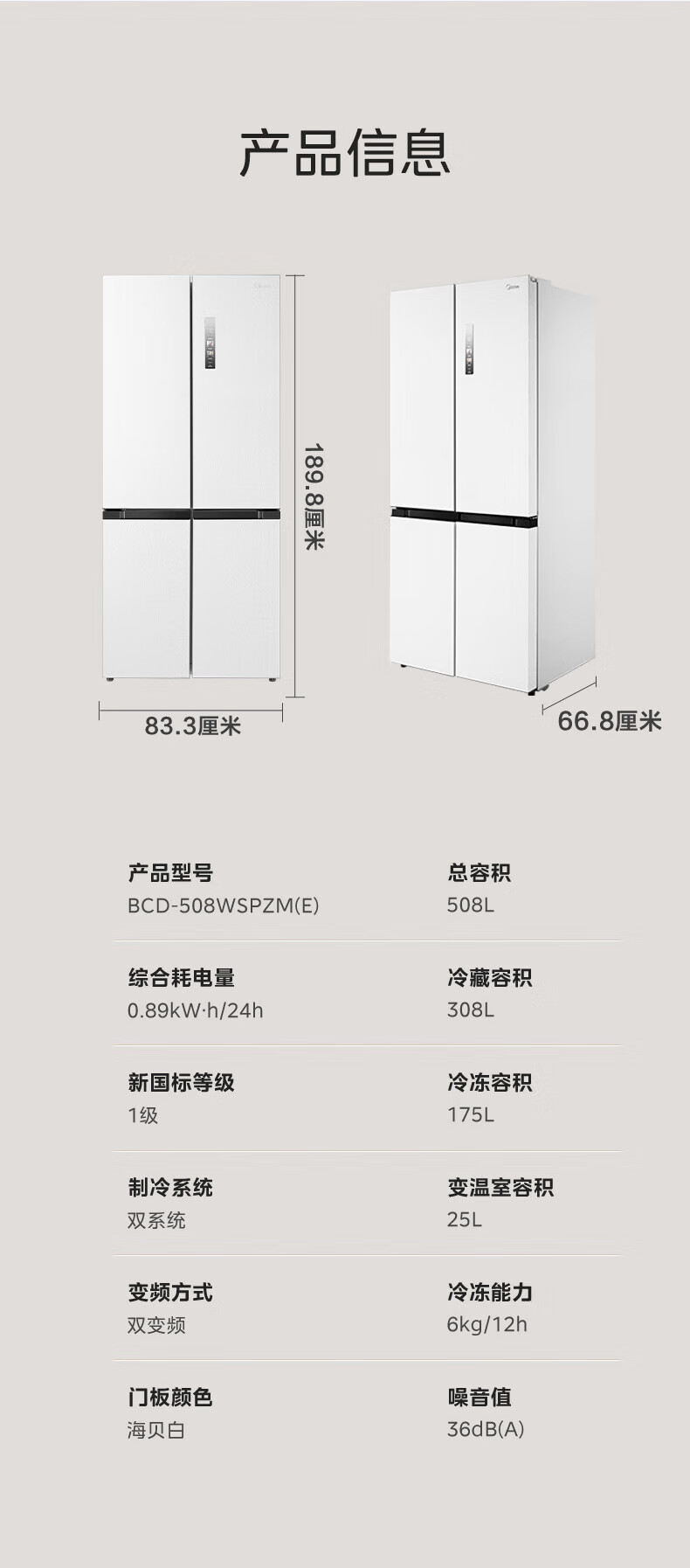 Midea refrigerator 531/508 cross-door four-door dual-system dual-cycle energy-efficient air-cooled frost-free dual-frequency large-capacity household refrigerator wifi intelligent control 531 dual-system full-space fresh-keeping refrigerator
