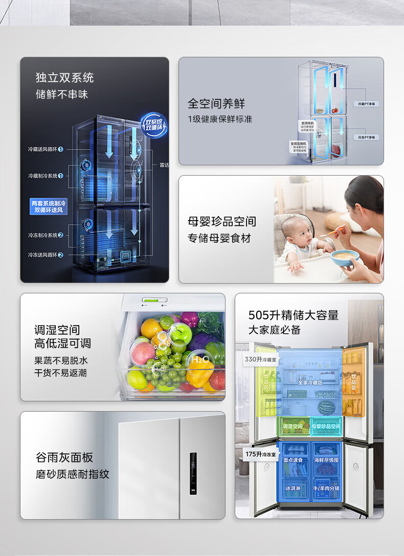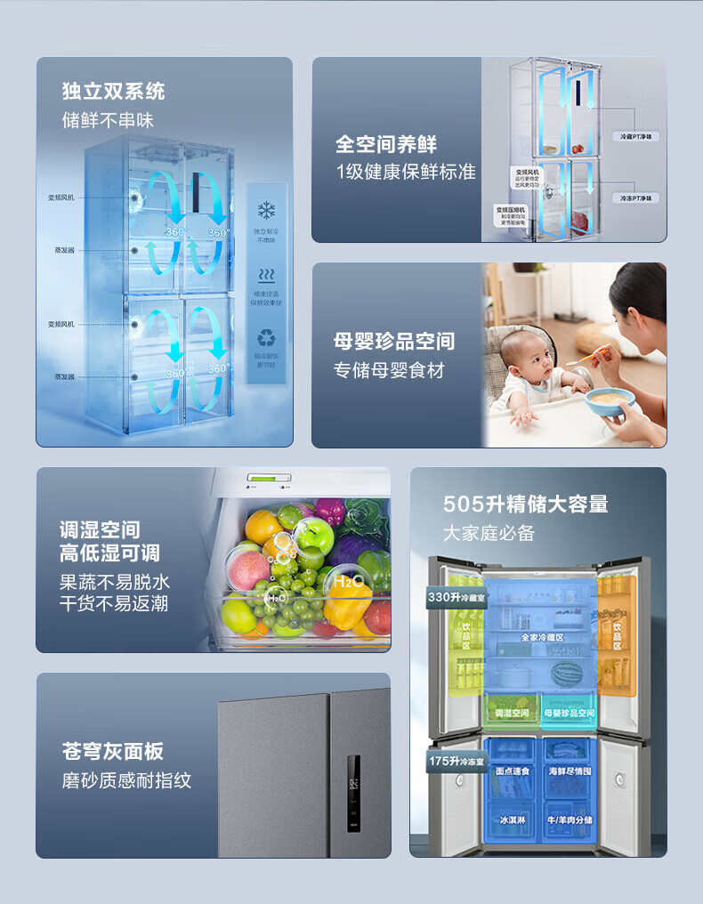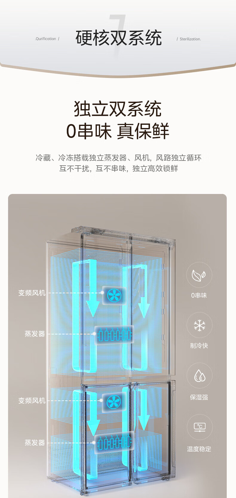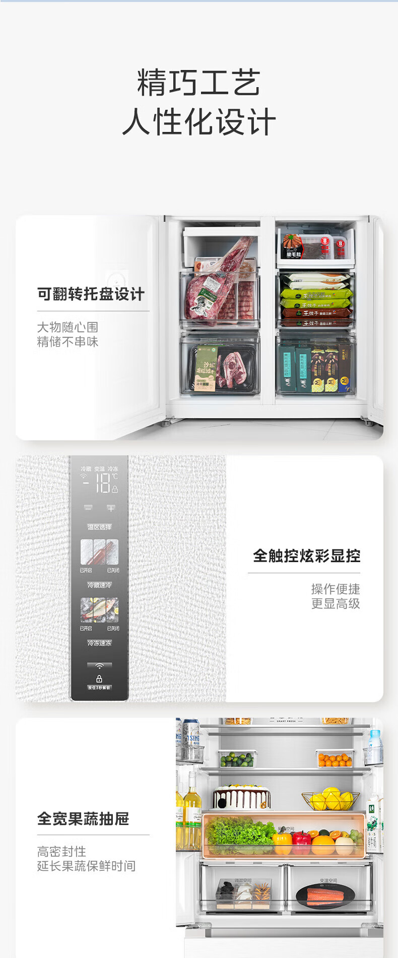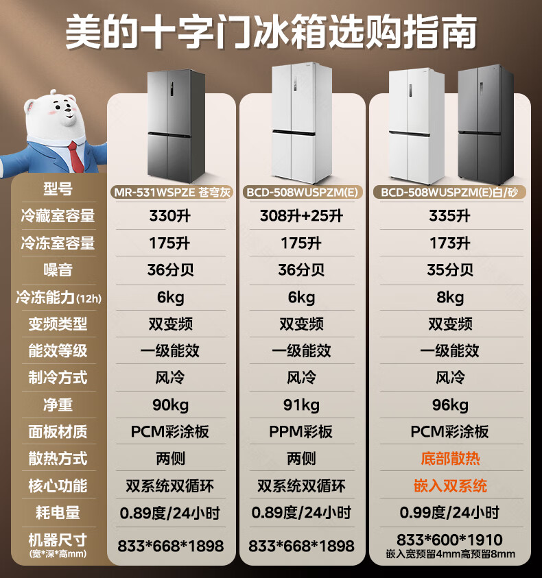 Midea refrigerator 531/508 cross-door four-door dual-system dual-cycle energy-efficient air-cooled frost-free dual-frequency large-capacity household refrigerator wifi intelligent control 531 dual-system full-space fresh-keeping refrigerator