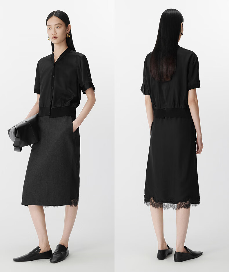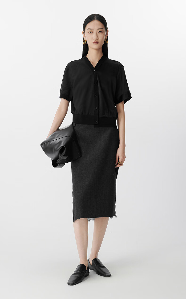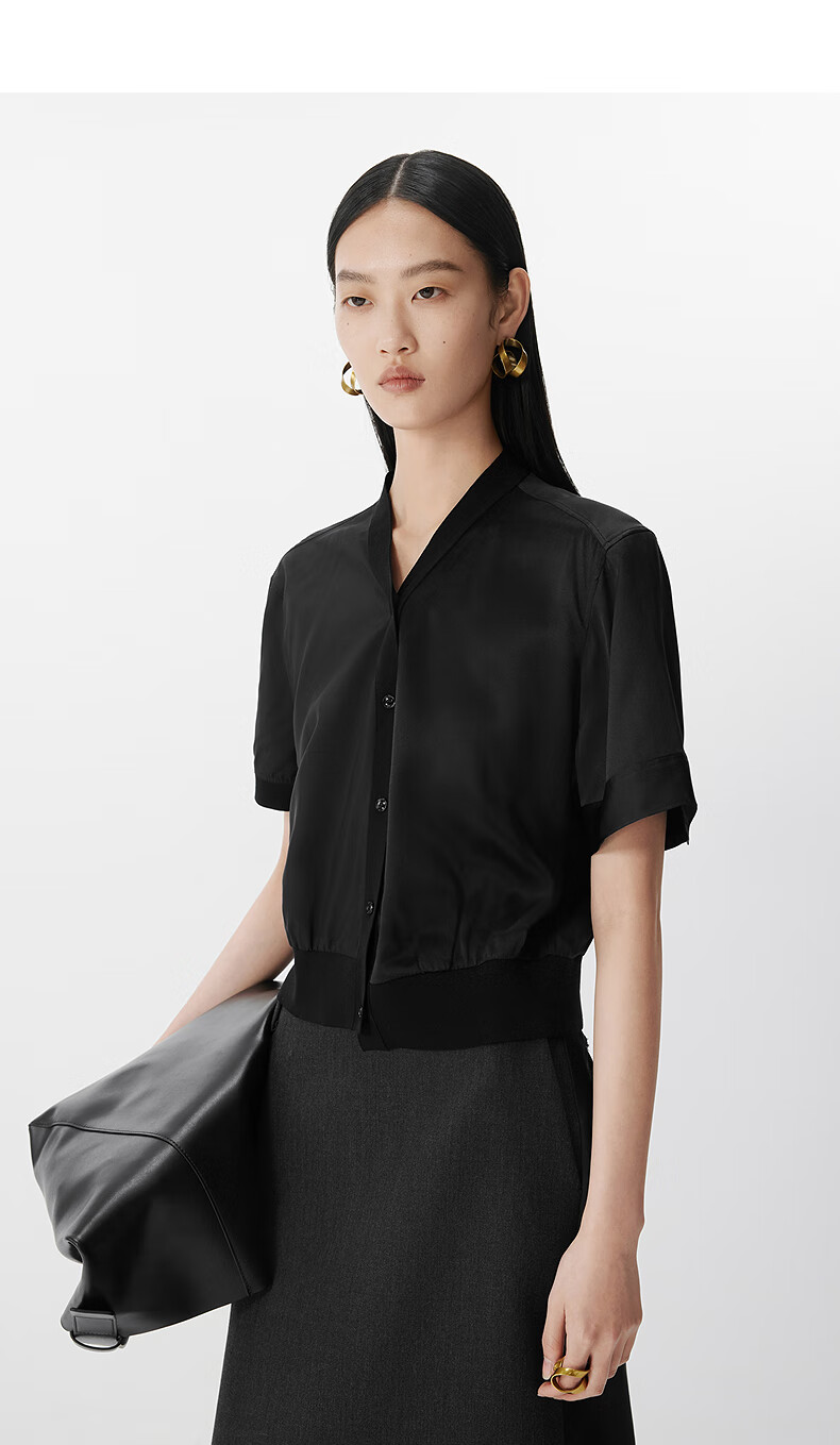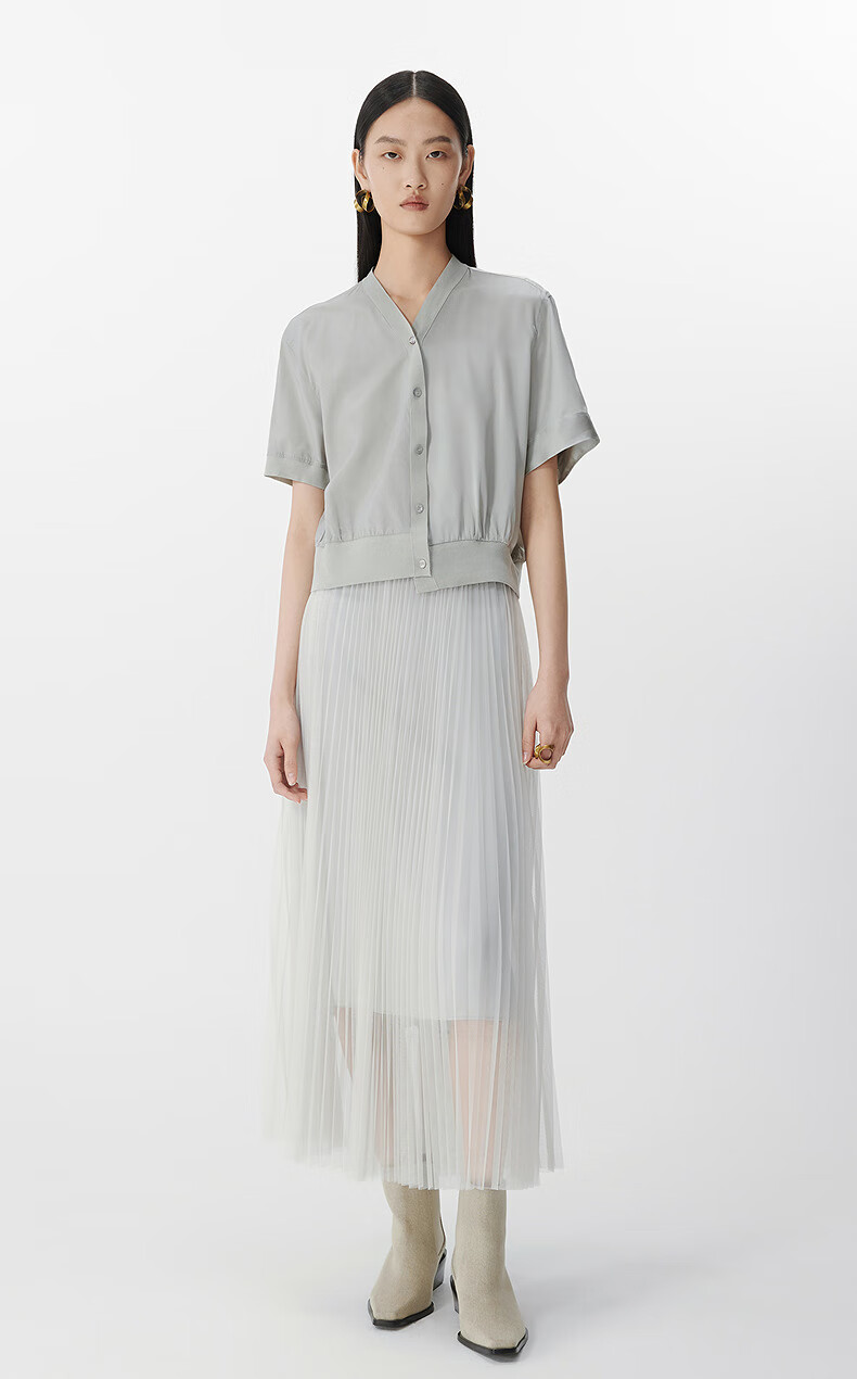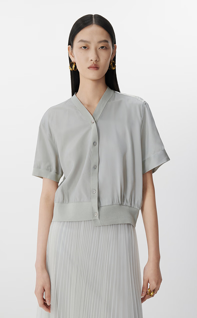JNBY shopping mall same style 25 summer new shirt short-sleeved V-neck casual 5P4213270 059/cold gray XL