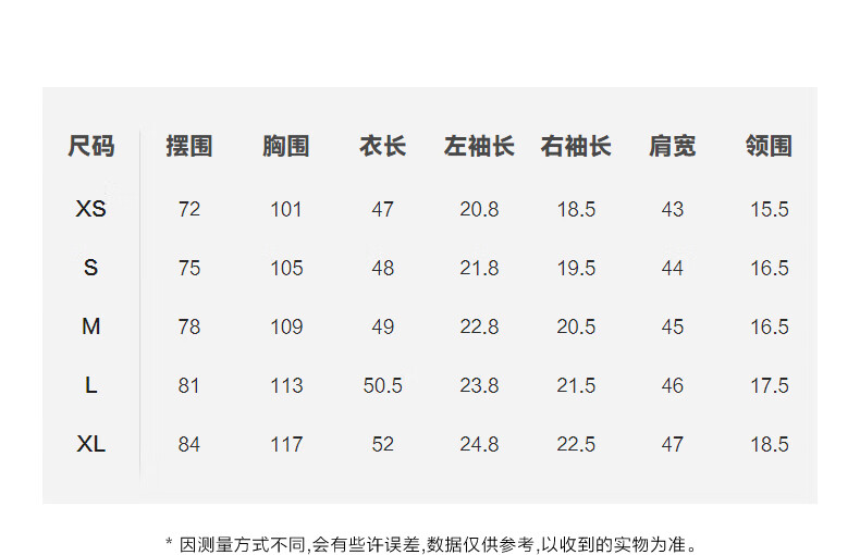China(cm) 72-76 76-81 81-87 87-93 93-98