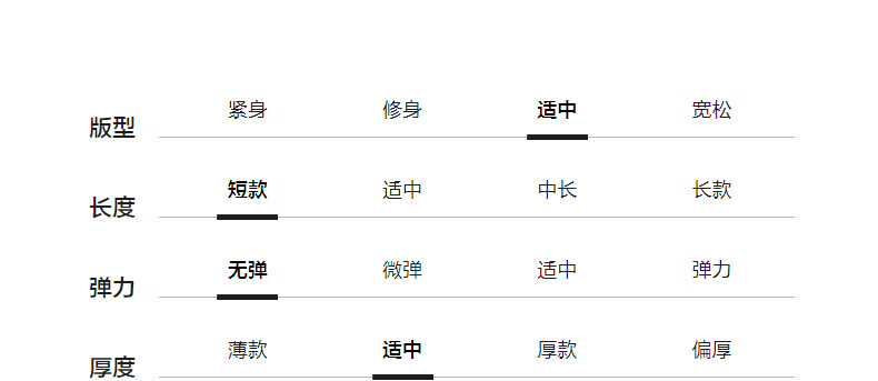 China (cm) 160-165/84-86 165-170 / 88-90 167-172 / 92-96 168-173 / 98-102 170-176 / 106-110