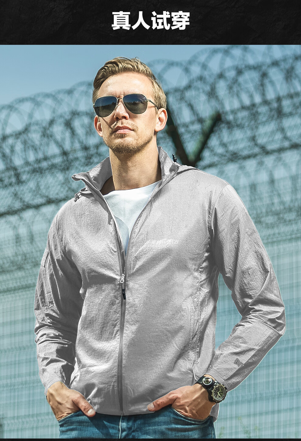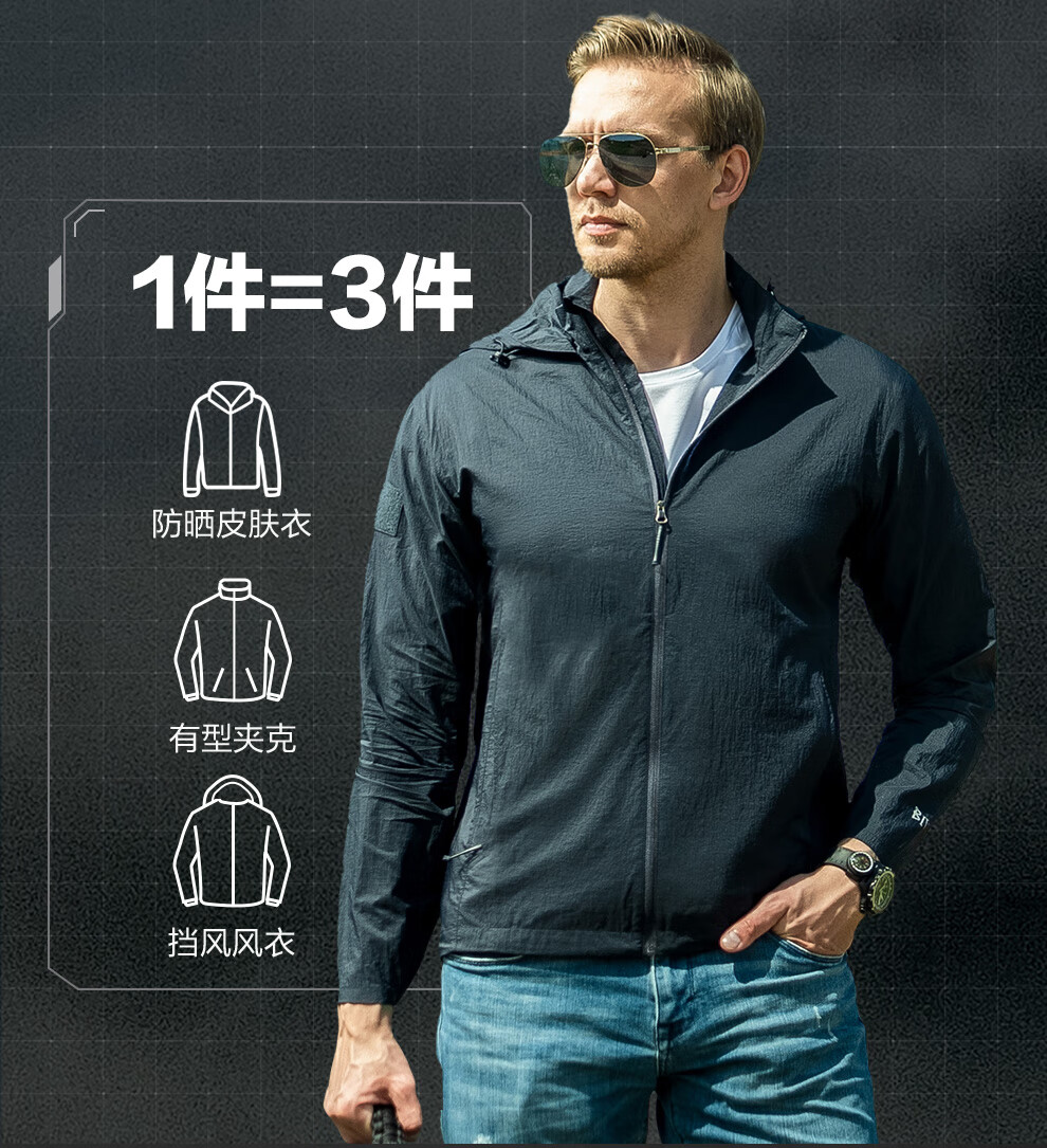 Longya Chaqueta cortavientos portátil ligera Longya de quinta generación de grado B4, chaqueta de protección solar informal de verano para exteriores, para desplazamientos, color gris acero titanio S 170/92A (120-140 Jin Jin equivale a 0,5 kg)