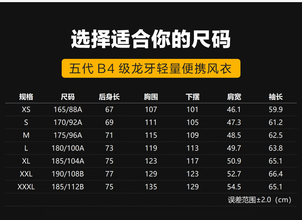 China (cm) 165 / 88-90 170 / 96-98 175 / 108-110 180 / 118-122 185 / 126-130