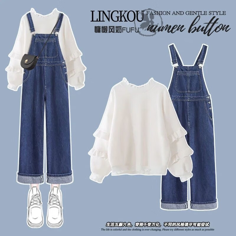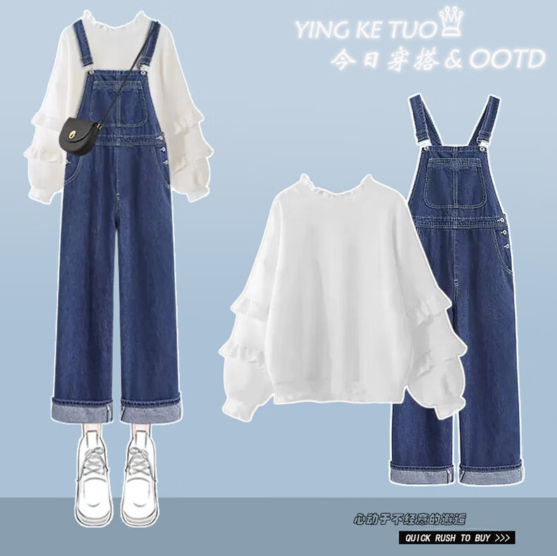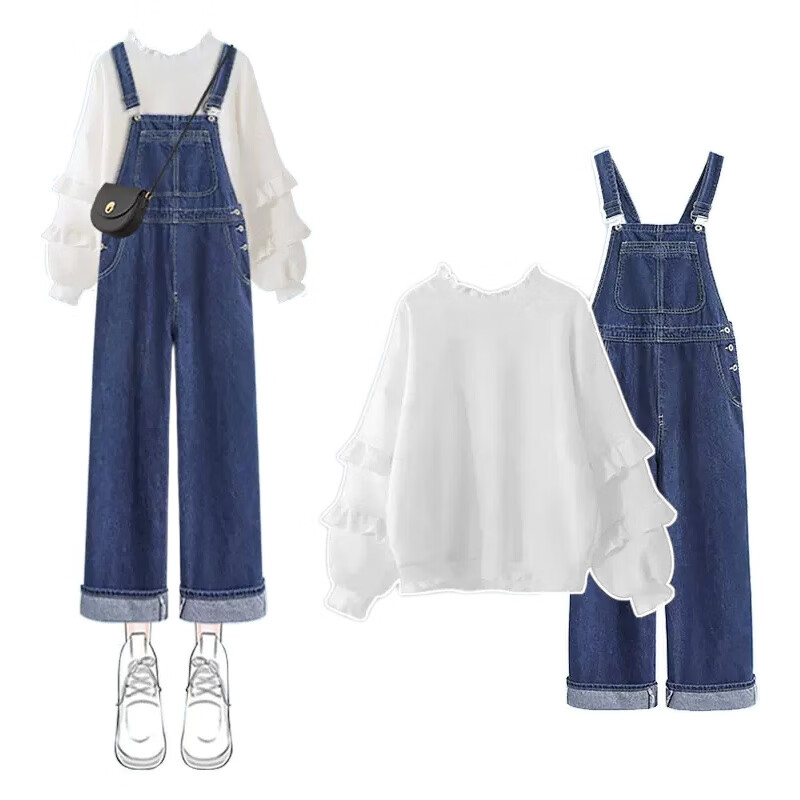 G.duck Little Yellow Duck Girls Overalls Suit Spring and Autumn New Style Western Style Korean Style Loose Casual Outer Wear Two-piece Set for Girls Blue Overalls cf (single piece) 160 (recommended height is about 150 cm)