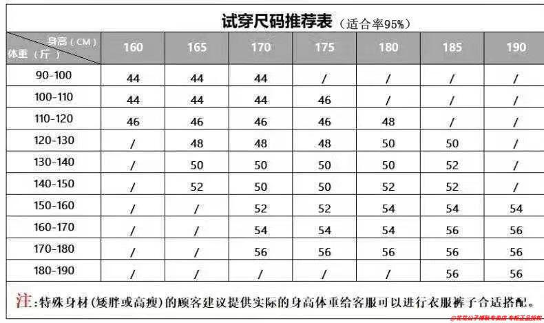 China (cm) 165 / 88-90 170 / 96-98 175 / 108-110 180 / 118-122 185 / 126-130