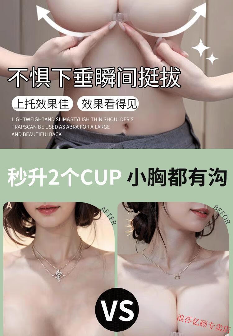LangSha (LangSha) transparent invisible silicone breast pads for women's wedding dresses, small breasts are made larger, push-up, waterproof, thin summer breast pads, C cup-thick-style, customized invisible special small breasts