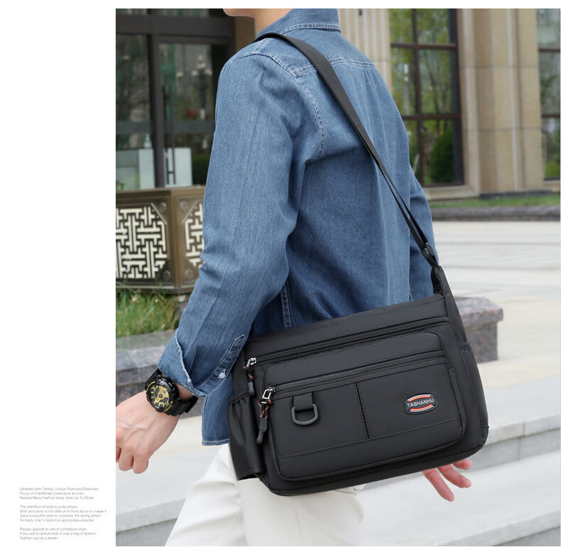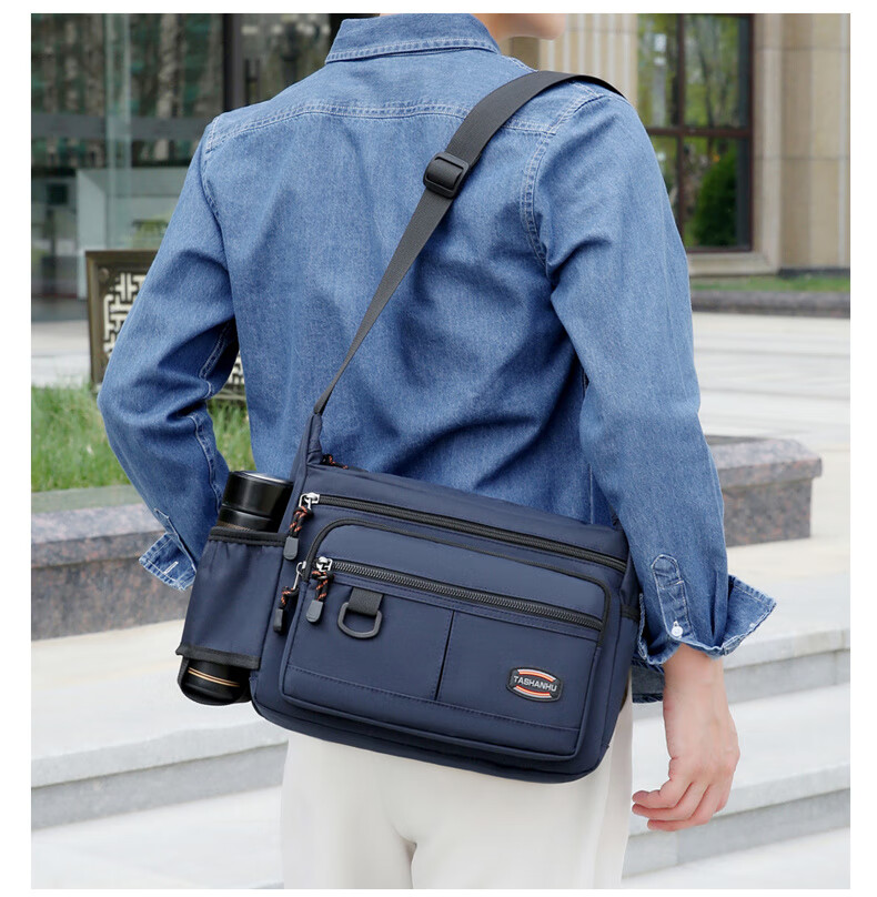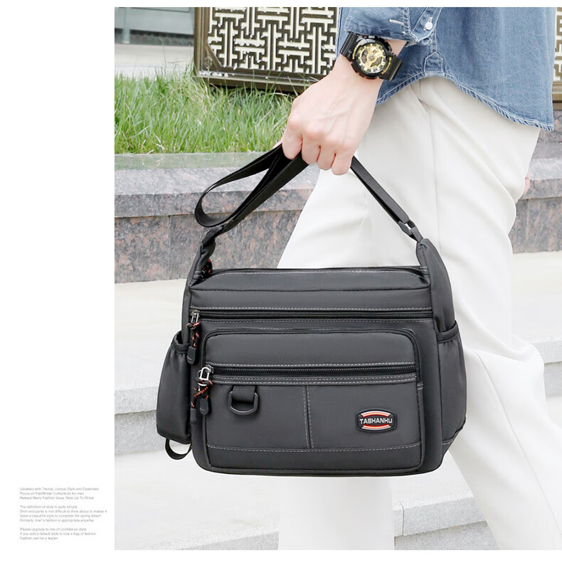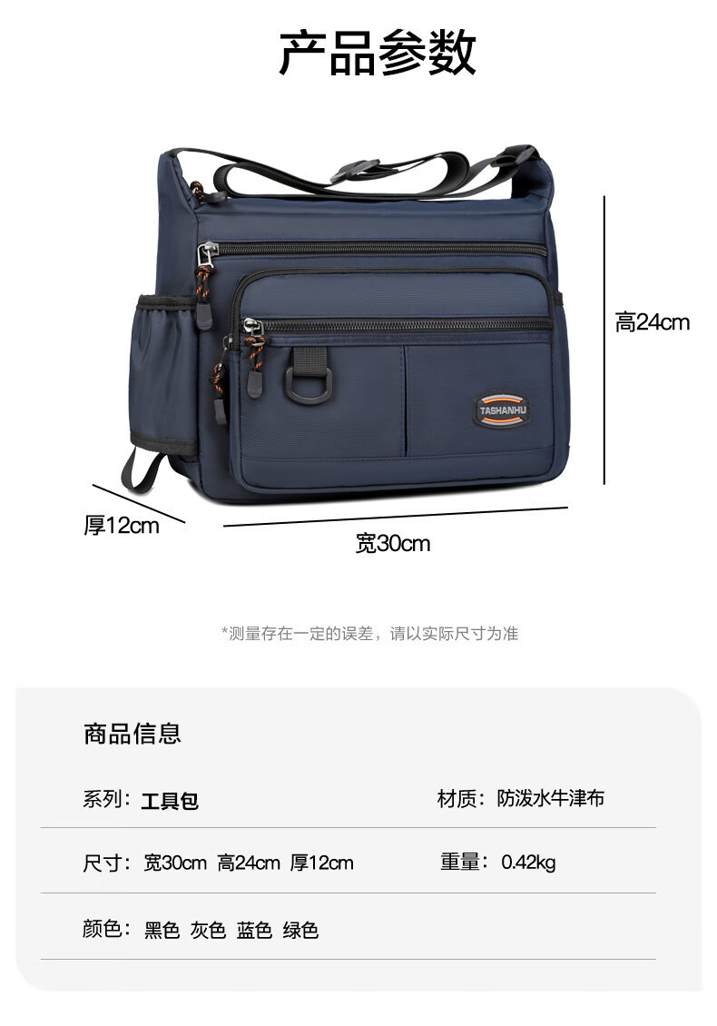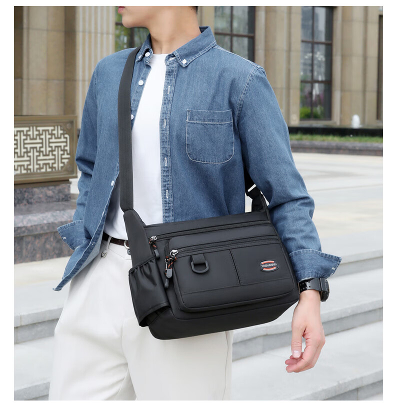 An Junsheng 2025 new thickened Oxford tool bag large capacity waterproof electrician tool bag multi-layer men's casual shoulder bag large new thickened Oxford 3518 flat ring black