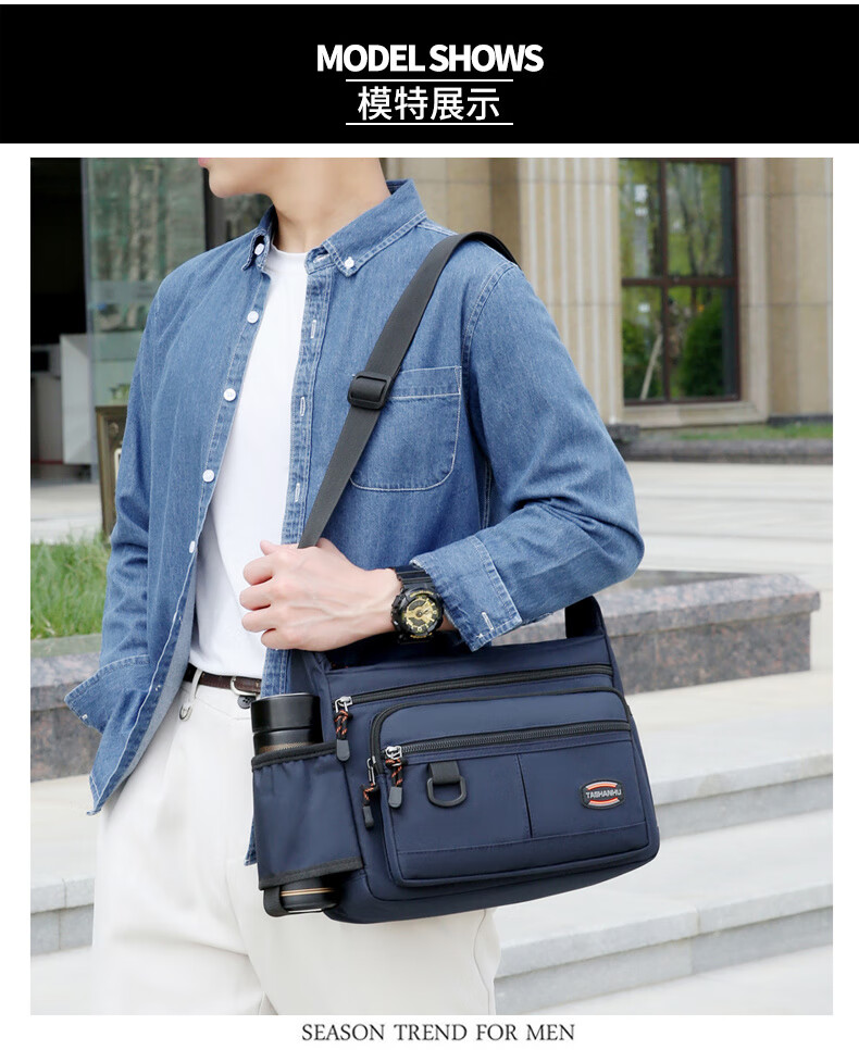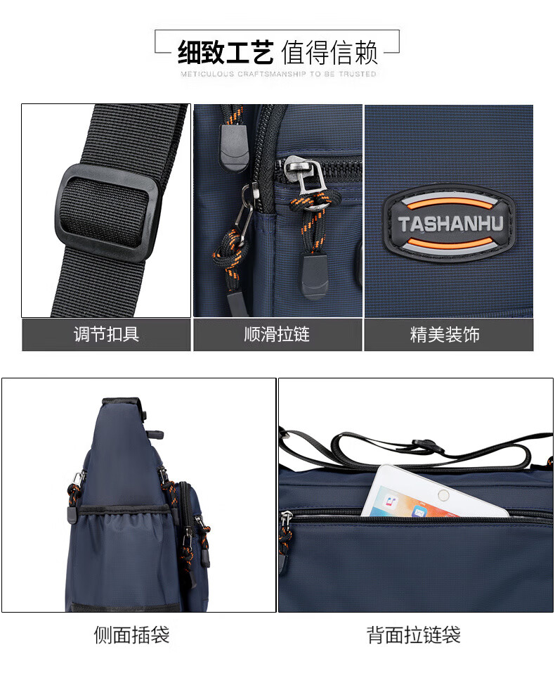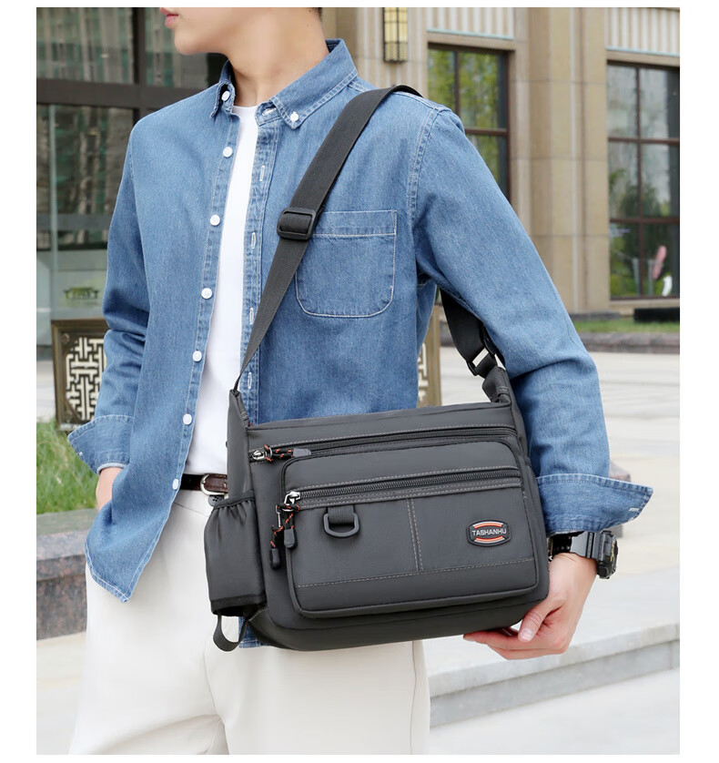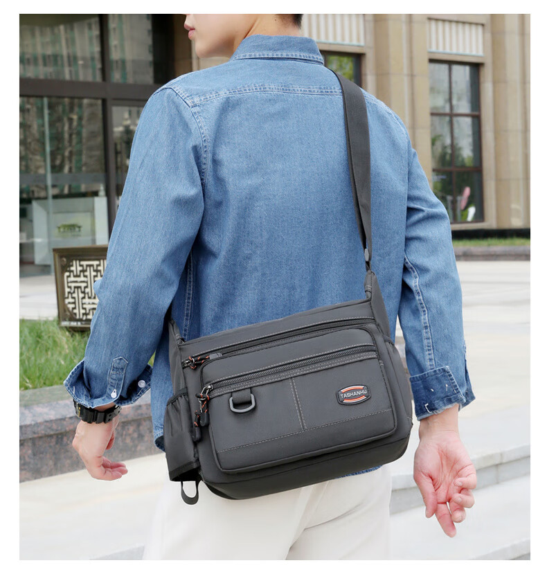An Junsheng 2025 new thickened Oxford tool bag large capacity waterproof electrician tool bag multi-layer men's casual shoulder bag large new thickened Oxford 3518 flat ring black