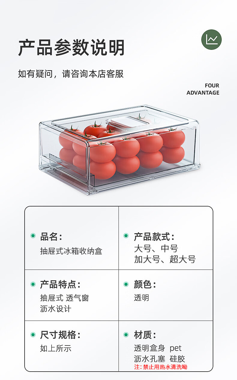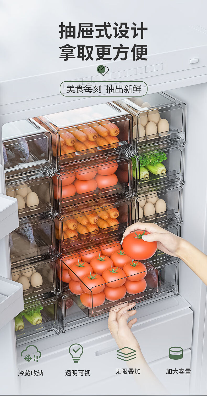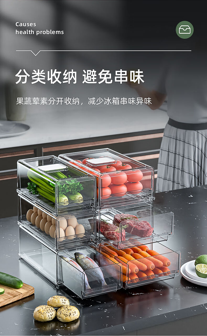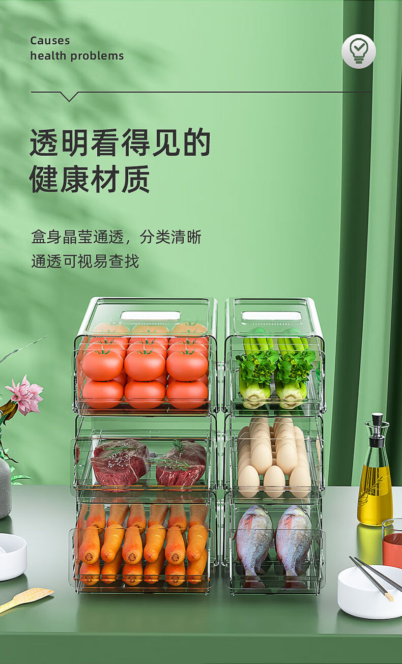 MZXM German imported quality refrigerator storage box drawer-type crisper refrigerator special food-grade fruit and egg food single pack medium size (upgraded breathable window/1