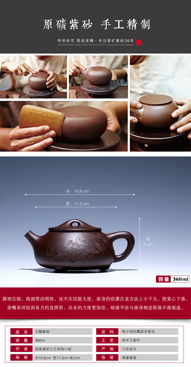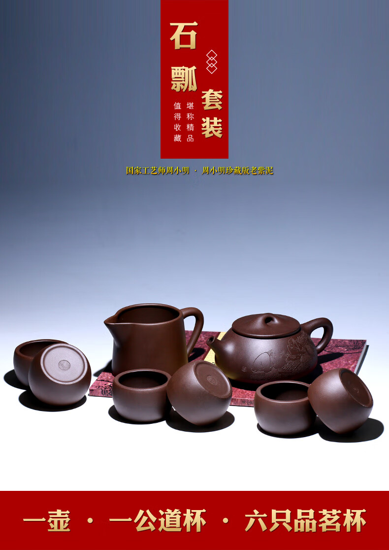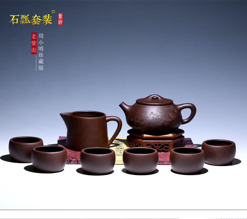 Chengyun Shangzun's collection of Yixing purple clay teapots, purely handmade, famous Kung Fu tea sets, Zhou Xiaoming's complete set of teapots, tea sets, stone scoop set, Guo Gong Zhou Xiaoming's stone scoop set