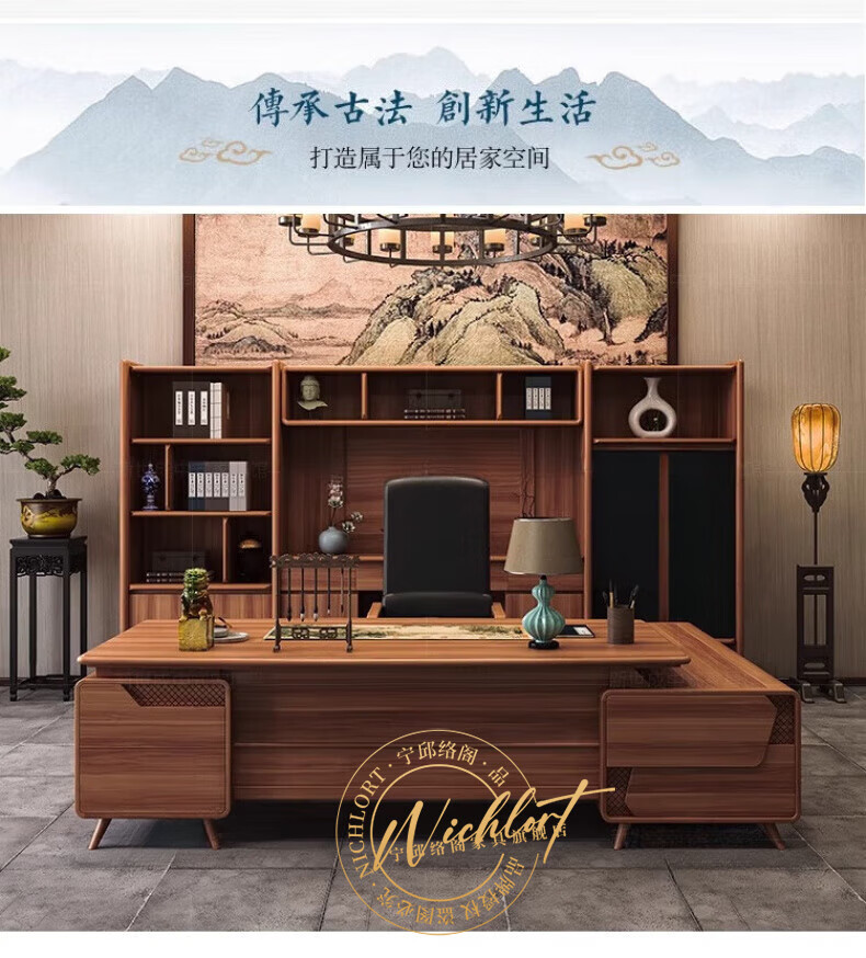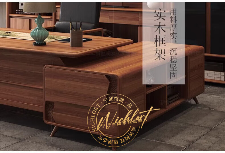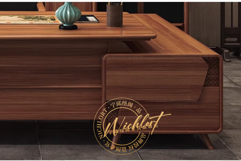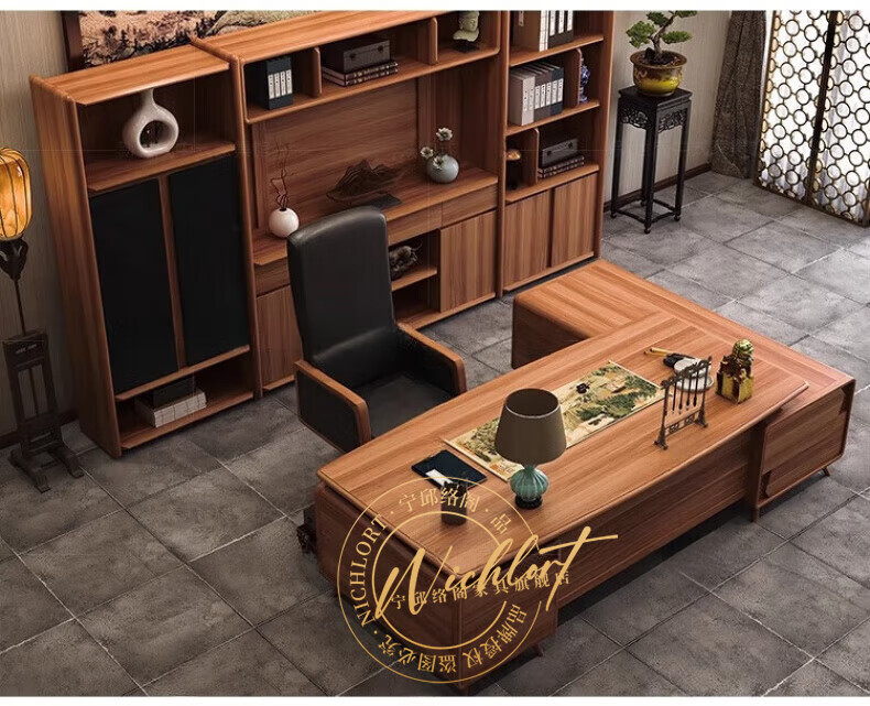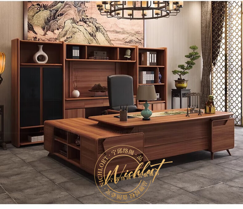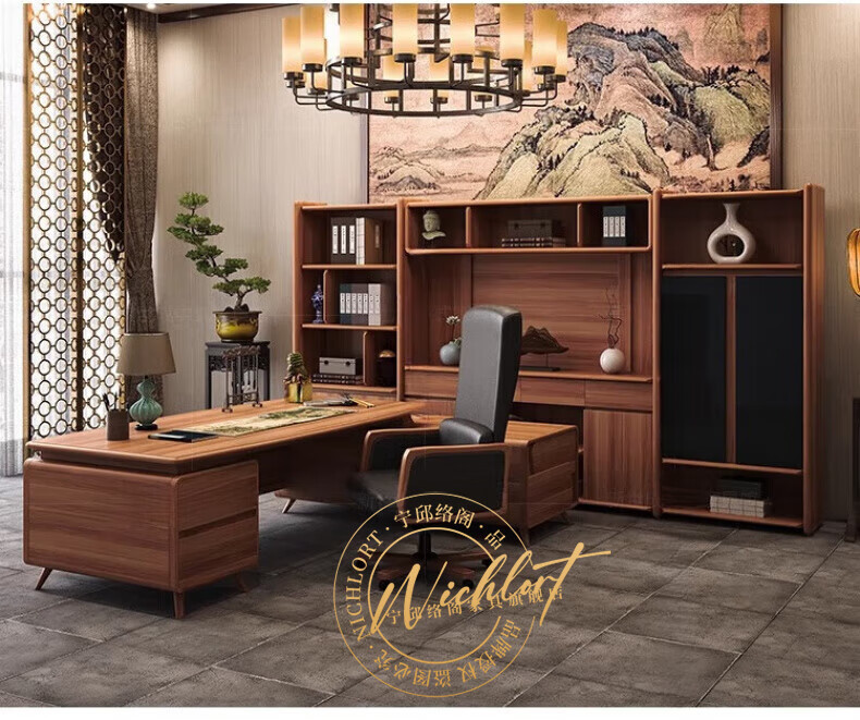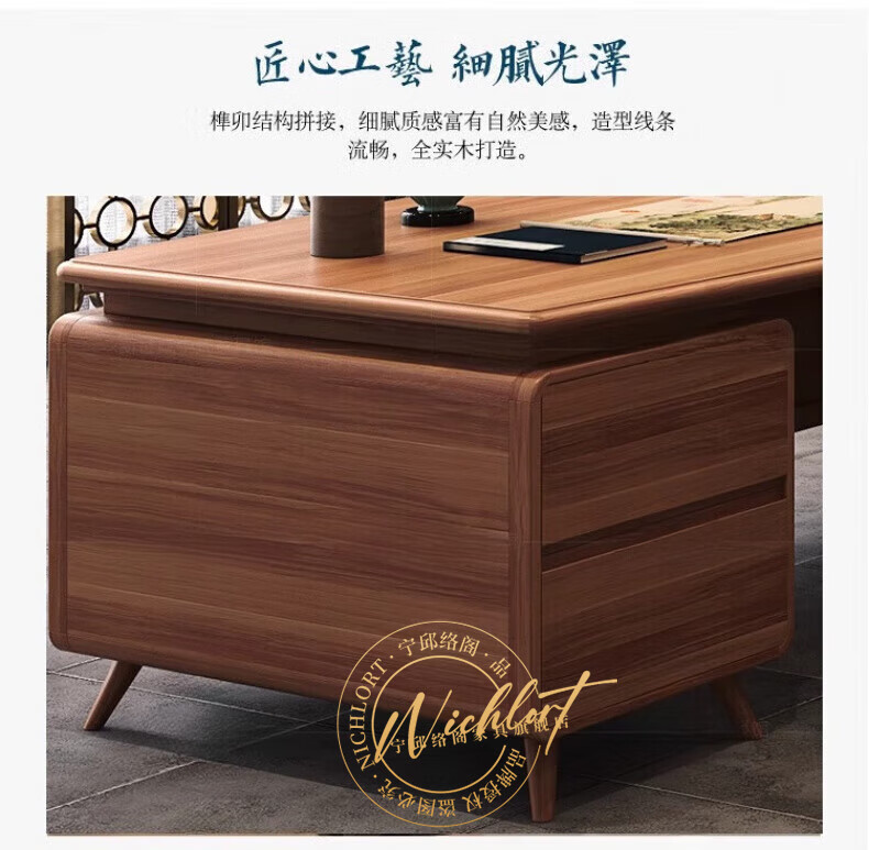 Ningqiu Luoge (NICHLORT) new Chinese style high-end boss desk solid wood office desk and chair combination black walnut CEO desk executive desk furniture customization 2.8 meters desk ash wood