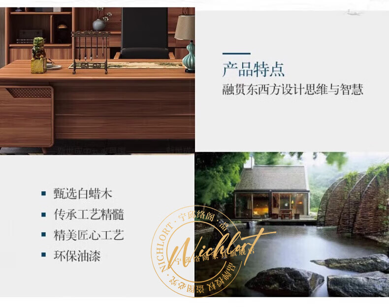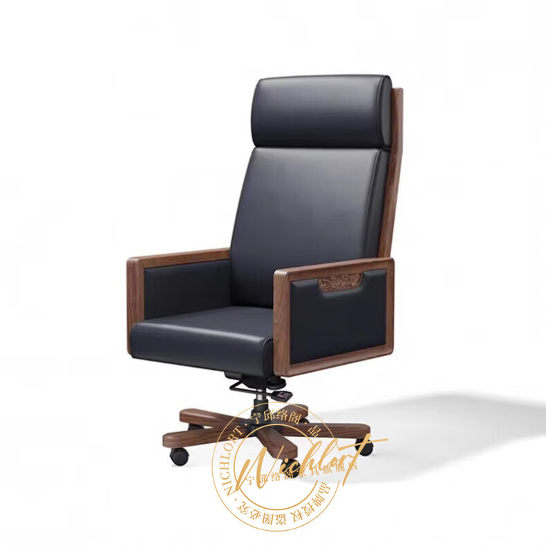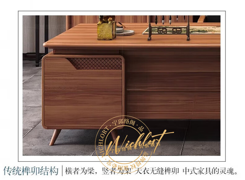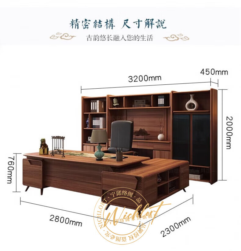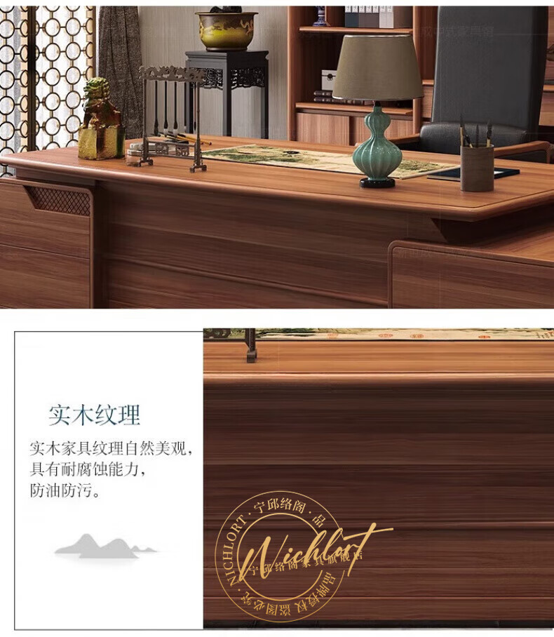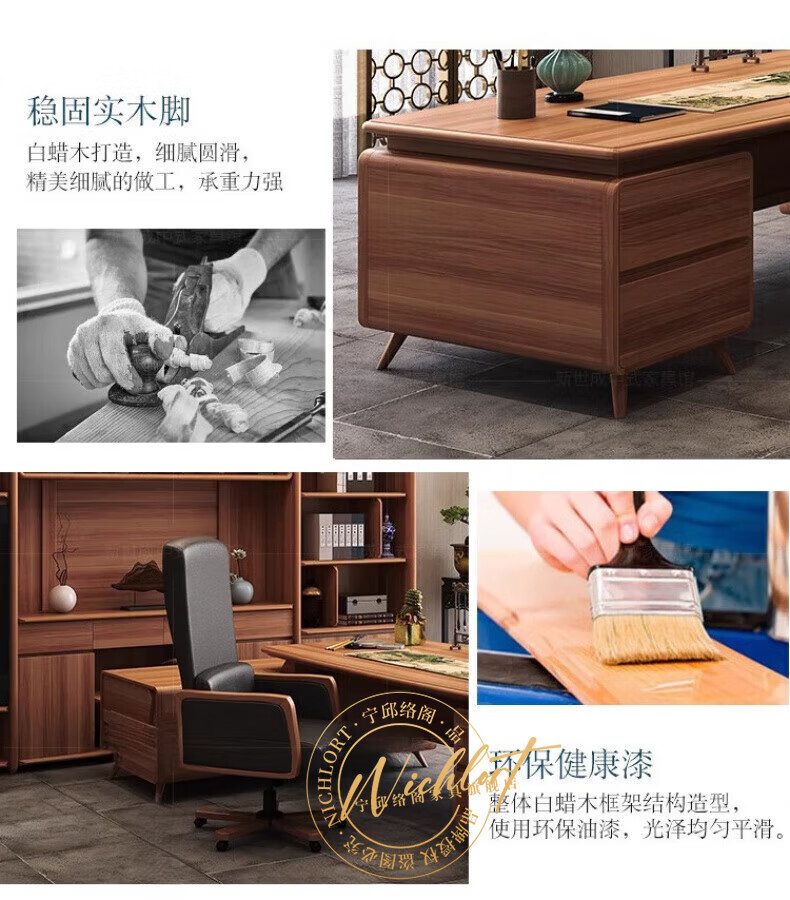 Ningqiu Luoge (NICHLORT) new Chinese style high-end boss desk solid wood office desk and chair combination black walnut CEO desk executive desk furniture customization 2.8 meters desk ash wood